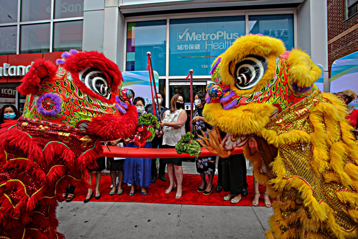The grand opening began with a ribbon-cutting by President & CEO of MetroPlus Health Dr. Talya Schwartz, Congresswoman Grace Meng, Councilman Peter Koo, and several representatives from local elected officials who christened the ground with shining scissors as traditional lion dancers majestically cantered to the sound of drumbeats.