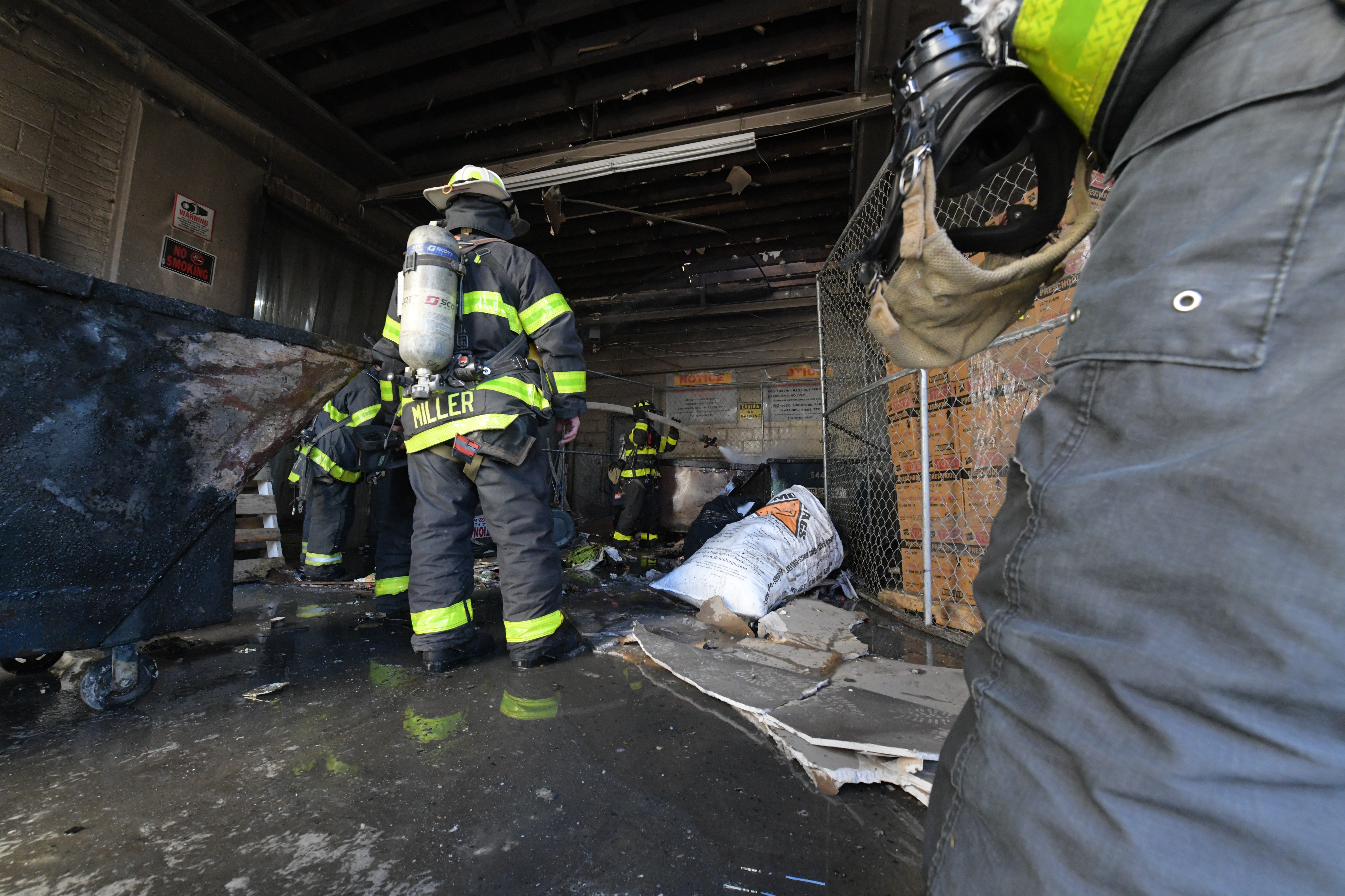 The fire broke out shortly after 10:20 a.m. at 544 Park Avenue off Sanford Street in Williamsburg, officials said. Firefighters found heavy fire blowing out of a one story loading dock area of the building, but evacuated part of the building during the fire.