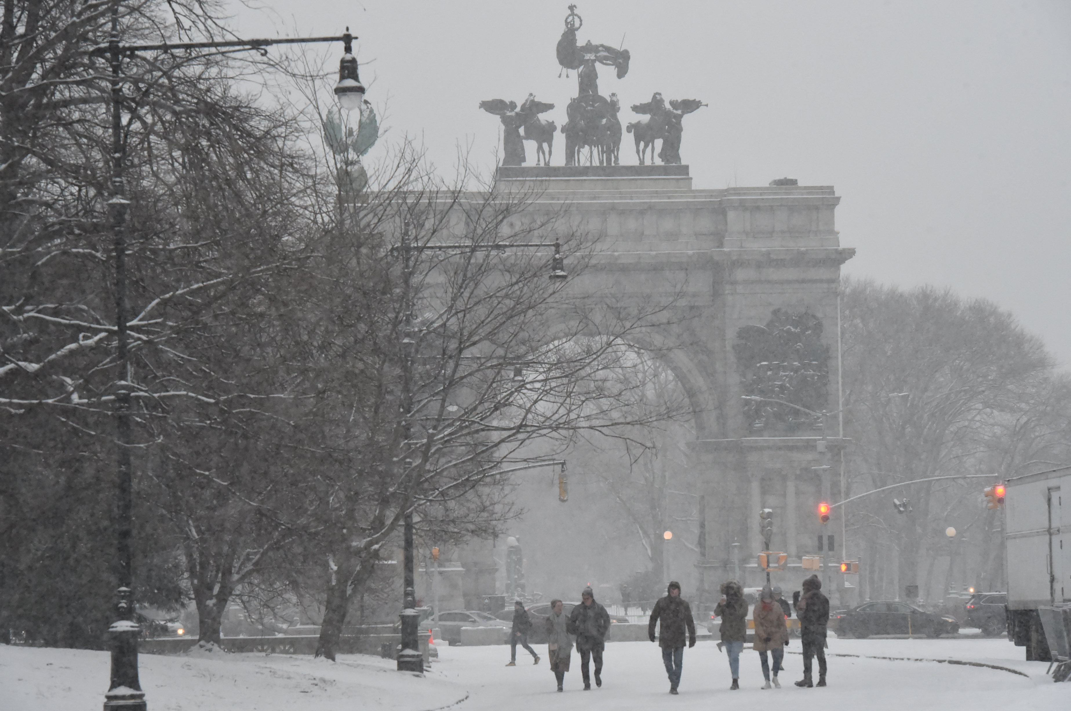 The storm hit its height at about 2 p.m. on Jan. 18, creating poor visibility for motorists who mostly stayed off the streets as Sanitation trucks made their rounds with truckloads of sand and salt to keep the streets from turning icy.