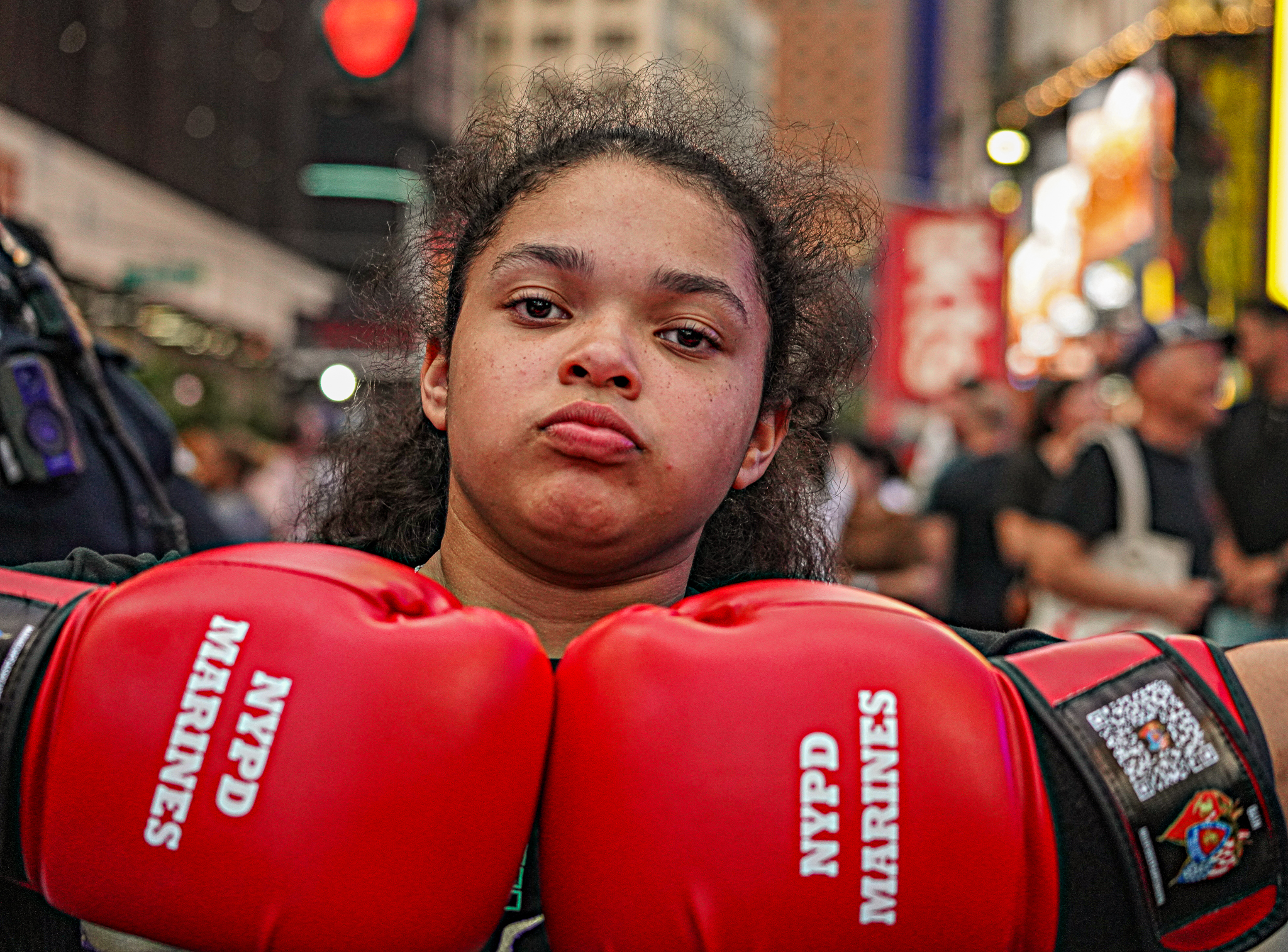 Nisa Rodriguez joined in glove distribution and serves as a special mentor to the youth. Not only a New York city cop as a Citywide Rapid Response unit, she is also a Hispanic woman and professional boxer who will be fighting in Madison Square Garden next month.Photo by Dean MosesThe NYPD and Marines celebrated Fleet Week in Times Square on Wednesday night by treating youngsters to a special show by the armed forces and distributing boxing gloves to youth athletes in an effort keep them motivated.Photo by Dean MosesThe NYPD and Marines celebrated Fleet Week in Times Square on Wednesday night by treating youngsters to a special show by the armed forces and distributing boxing gloves to youth athletes in an effort keep them motivated.Photo by Dean MosesKicking-off Fleet Week, the presentation had many looking on in awe, including youngsters who are currently being mentored by a police program.Photo by Dean MosesKicking-off Fleet Week, the presentation had many looking on in awe, including youngsters who are currently being mentored by a police program.Photo by Dean Moses