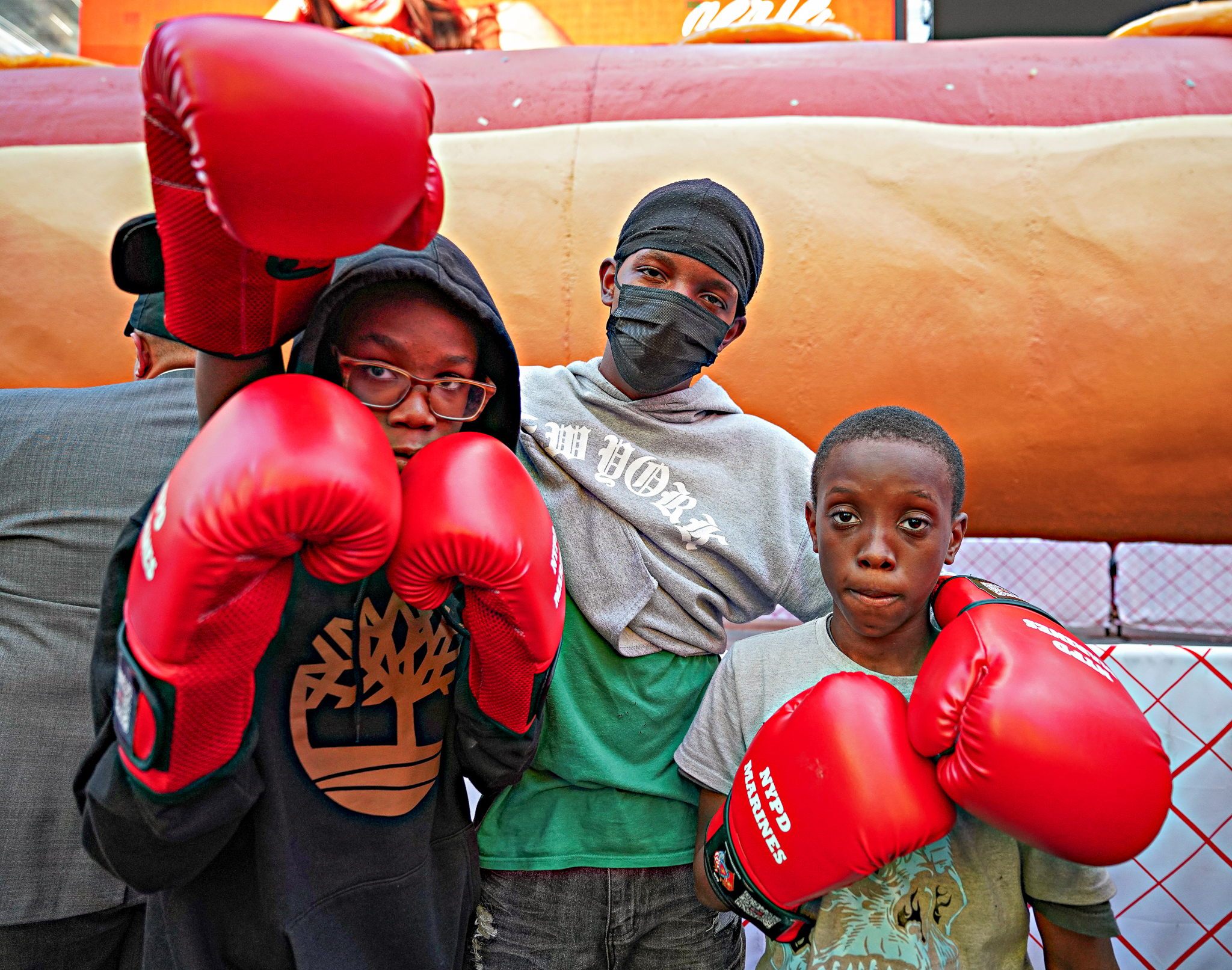 After joining sailors and other members of the Armed Forces, the men and women played music, sang, and interacted with the audience, it was revealed that the NYPD and marines teamed up give out free boxing gloves to the youngsters to help continue their training.