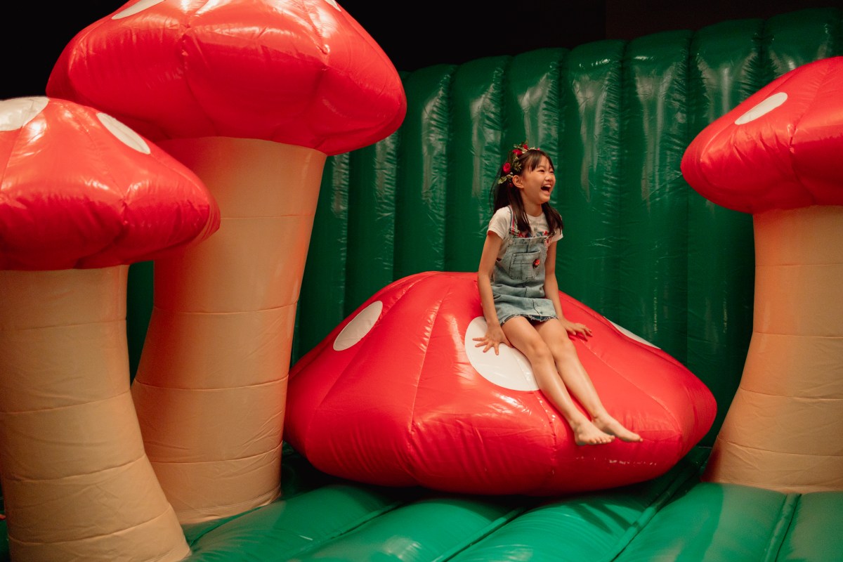 The immersion appeals to all ages—there is a mushroom-themed bounce house for children (and children at heart), a flowery ball pit situated beneath a digital blue sky, and a bar called The Conservatory that serves bubbly, signature Chandon beverages. As adults sip on spritzy drinks, children can snack on cotton candy spun on flowers while drawing or crafting a crown of fresh flowers.
