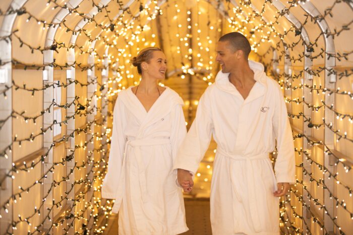Captivating performances aside, QC New York’s outdoor heated pools offer a truly unique winter escape — as do its many amenities, from fully immersive saunas and steam baths to foot soaks, relaxation rooms and more. The spa also provides heated walkways and tunnels leading to the pools, complete with warming racks to keep robes cozy on chilly days.