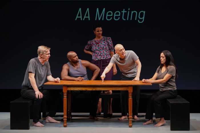 Abuda (who seems to always materialize in a flashy new wardrobe and wig) takes her performance to a gleefully ridiculous, fully physical, diva-like extreme, which contrasts nicely with the tranquil Jones, tenderhearted Young, innocently romantic Salavar, and downbeat Donovan.