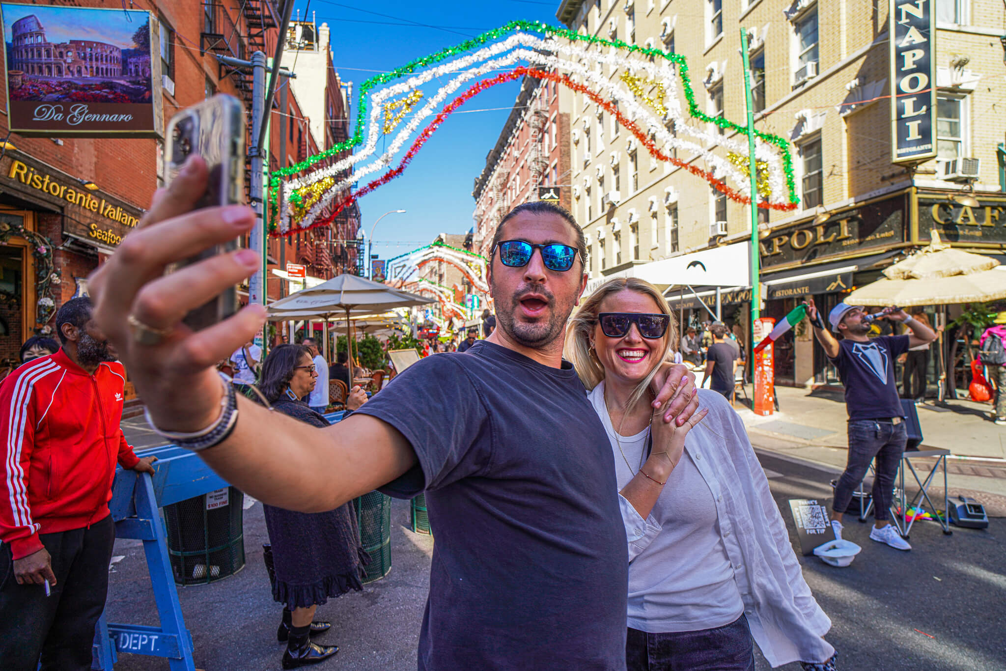 The sound of Italian music and laughter wafted on the air alongside smoke that drifted in plumes from sizzling food. Native New Yorkers and tourists alike weaved through stalls clutching sausages, pizzas, and beverages.