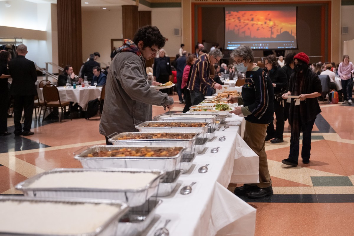When the sun officially set at 7:12 p.m., Rabbi Davidson delivered a blessing, followed by a call to prayer displayed on a large projector. The Muslim faithful then retreated to the stage for the night prayer before breaking their fast and enjoying the buffet-style dinner.