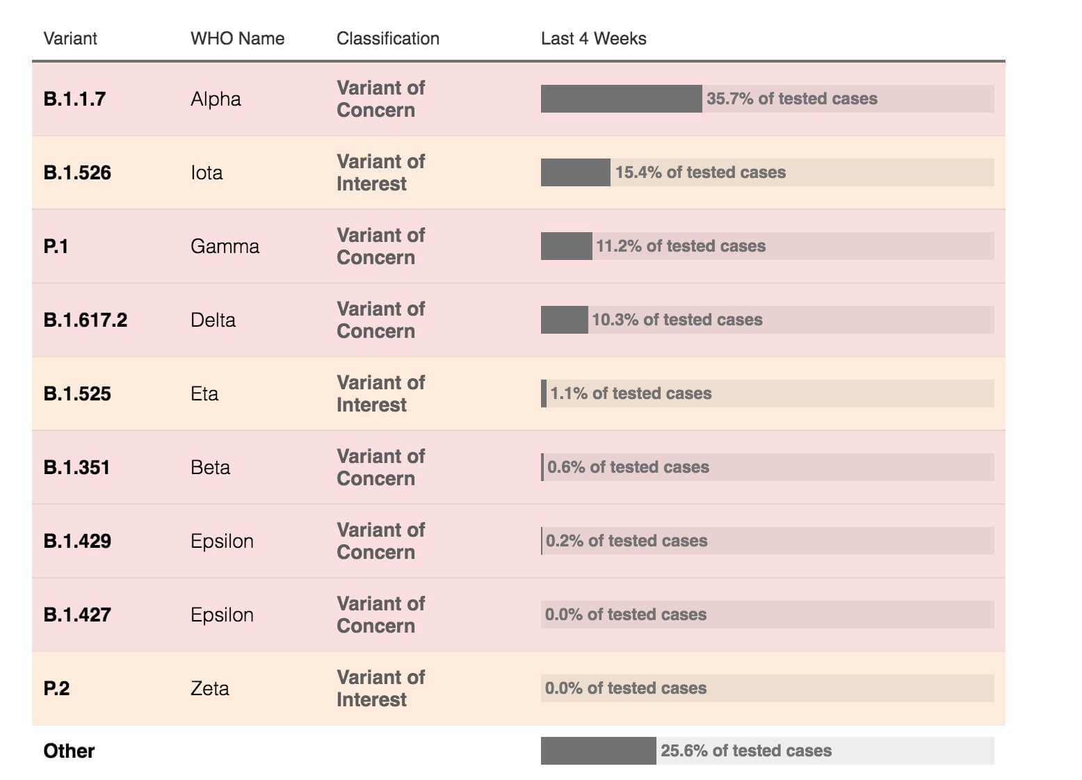 More than half of all COVID-19 cases diagnosed in New York City involve some sort of virus variant, according to the latest city Health Department data.
