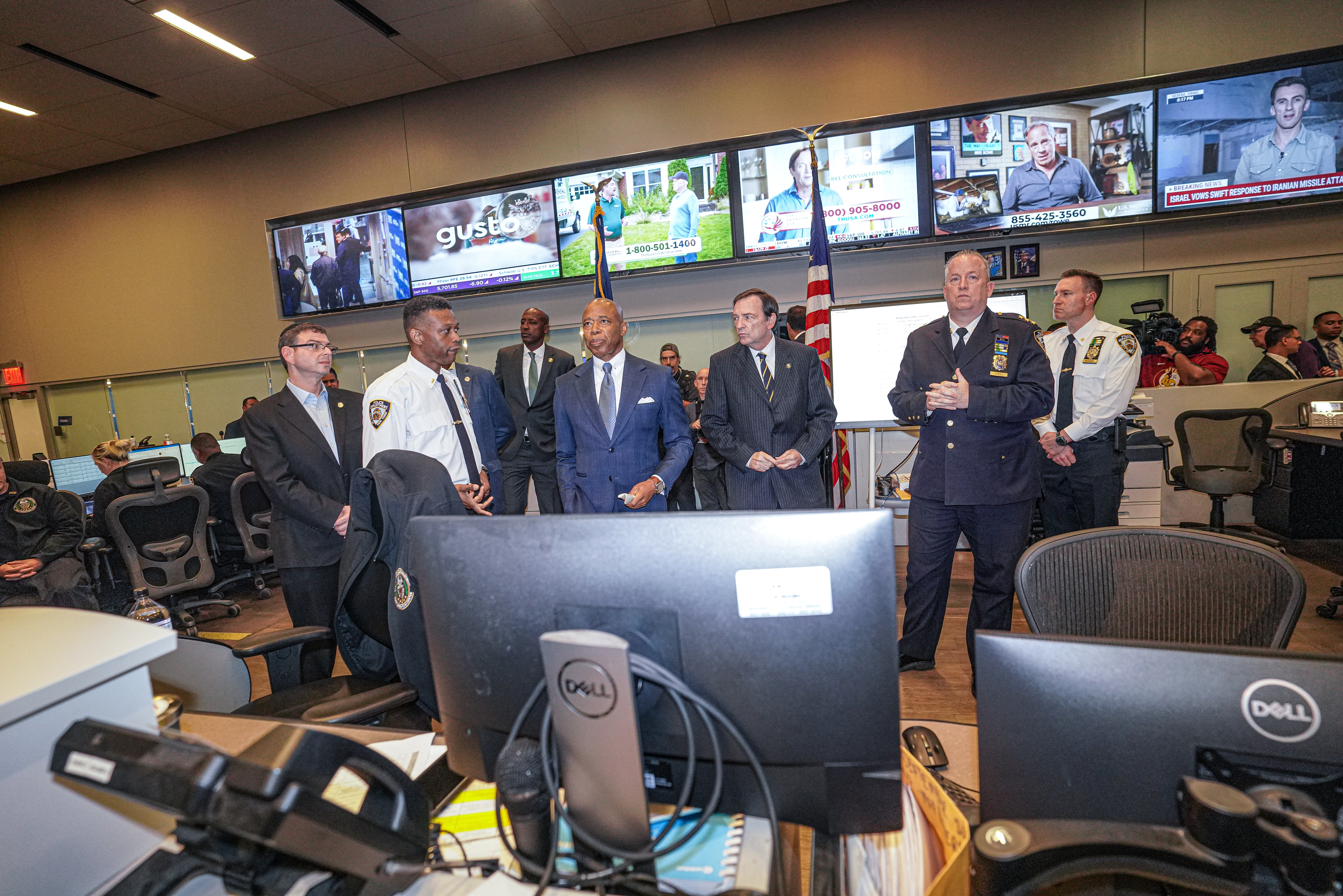 Top police brass stood alongside Mayor Eric Adams inside of the NYPD Joint Operation Center at 1 Police Plaza on Oct. 2, a room where cops watch the comings and goings of the Big Apple from thousands of security cameras.