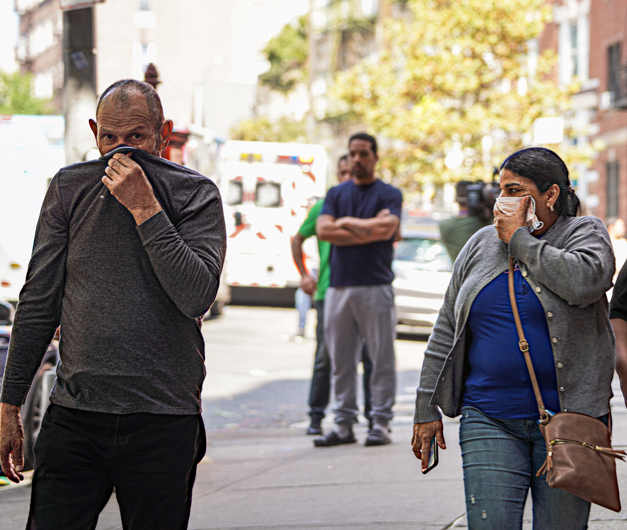Even members of the press reporting on the incident scrambled to cover their faces.