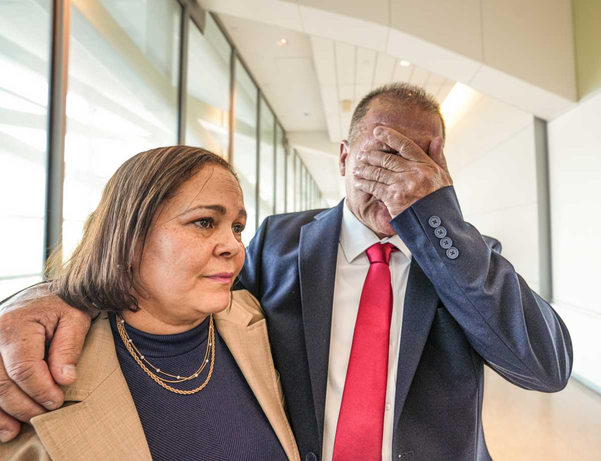 Caba staggered from the courtroom, one hand resting on his face and another clasping his face.
