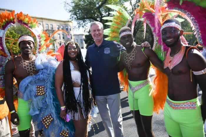 Mayor Bill de Blasio and First Lady Chirlane McCray joined the West Indian Day Parade on Eastern Parkway and Nostrand Avenue later that day along with other electeds like Senate Majority Leader Chuck Schumer.