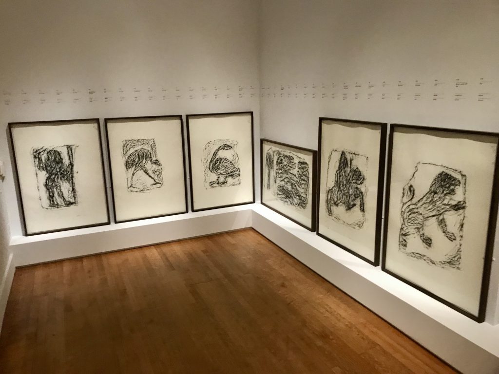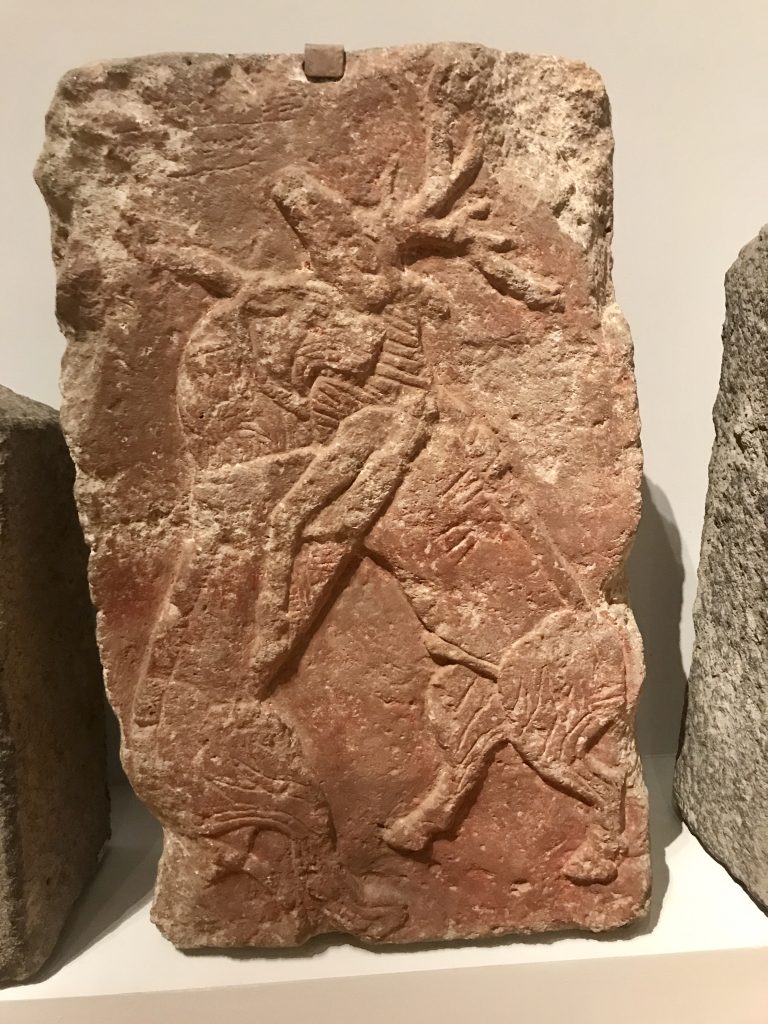The exhibit includes the Met’s four ancient stone slabs with mythological carvings, and also works by Tabet that were an attempt to unify the slabs that are now scattered in museums throughout the world. Tabet made charcoal rubbings of the reliefs, 32 in all, that include slabs from Berlin, New York, Paris, Baltimore, Aleppo and London. There are also personal items from von Oppenheim and Borkhoche on display, related to the excavation in Tell Halam.