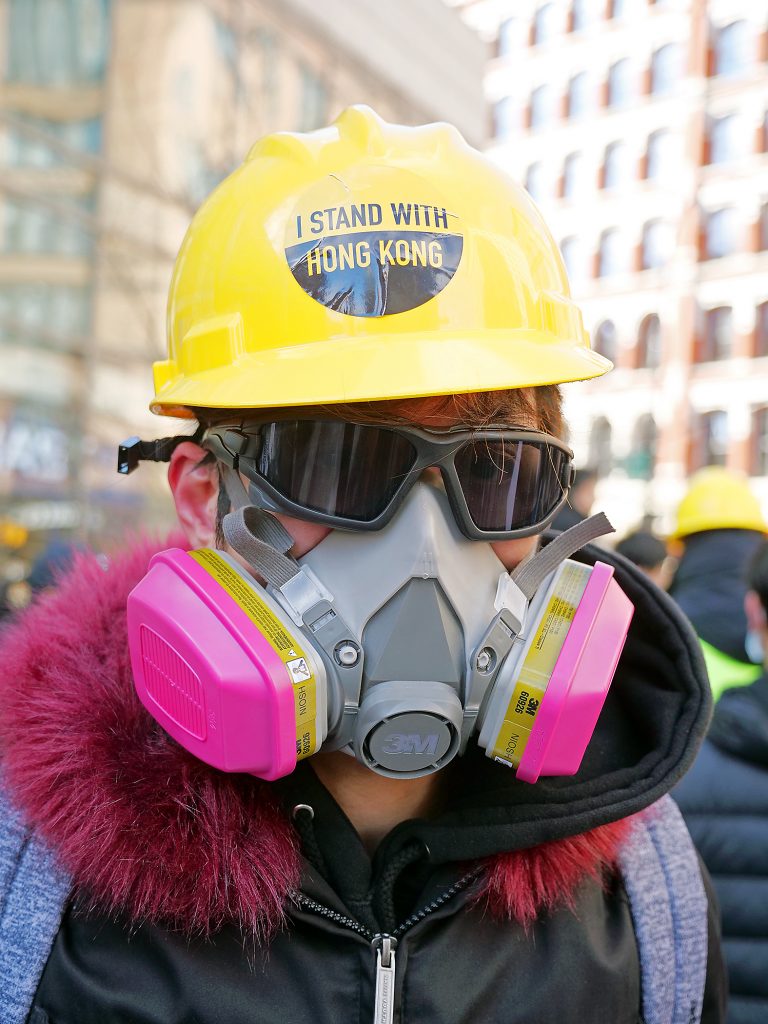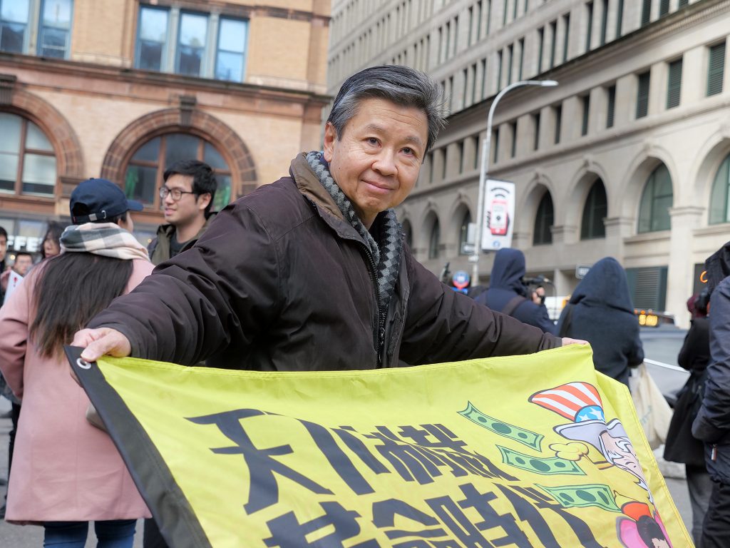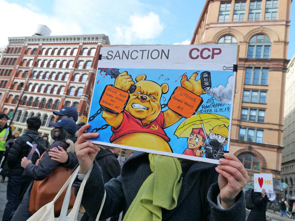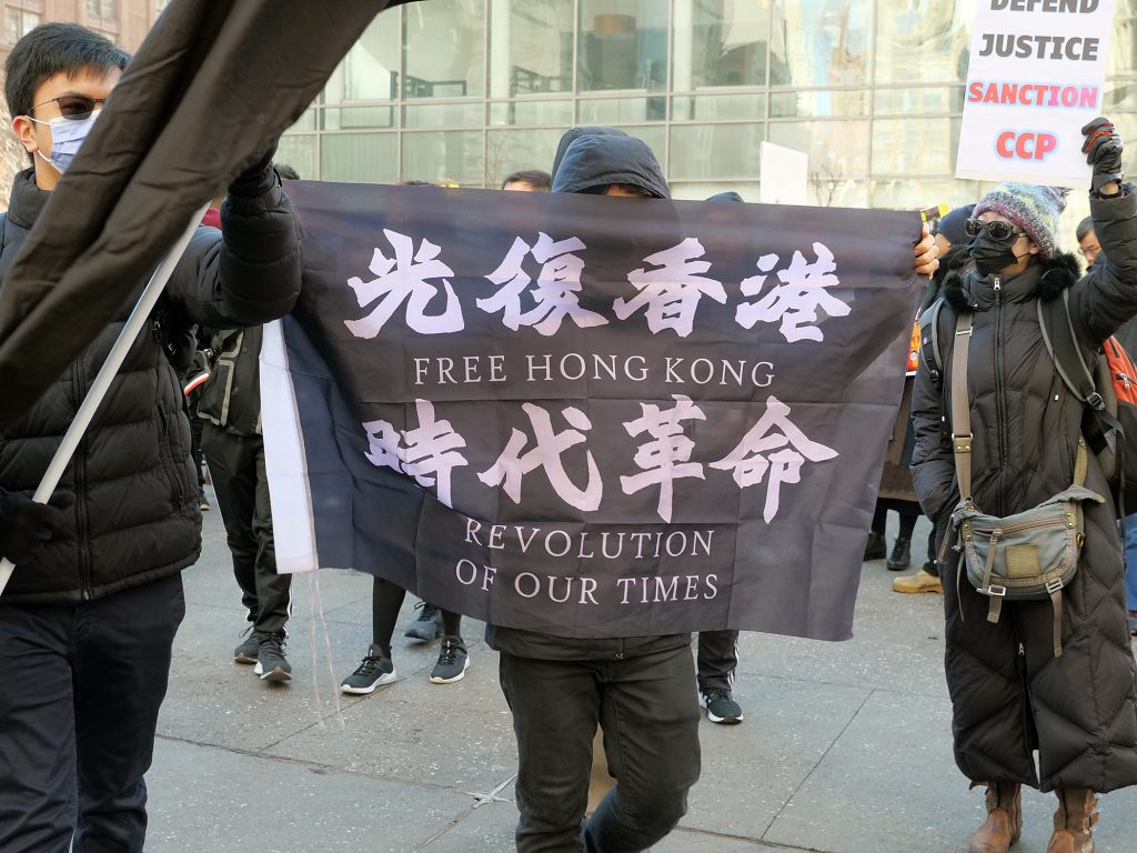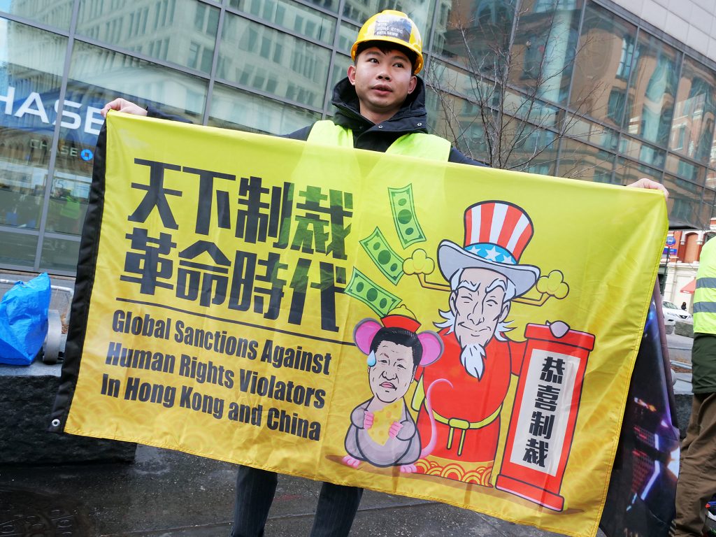 About 50-75 protesters met at the Cube in Astor Place Sunday afternoon to protest the Chinese government crackdown on Hong Kong protesters. They then marched off up 6th Avenue to Times Square.