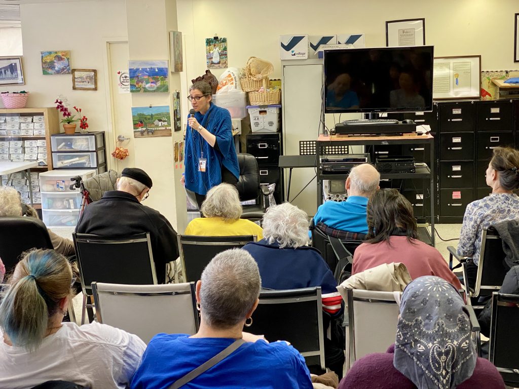 The talk was led by Rabbi Joanna Samuels, founding Executive Director of the Manny Cantor Center, at 197 East Broadway. The event was held a few blocks away, at 465 Grand St., at the Educational Alliance’s Co-op Village Naturally Occurring Retirement Community (NORC), which provides social services for older residents on Grand Street.