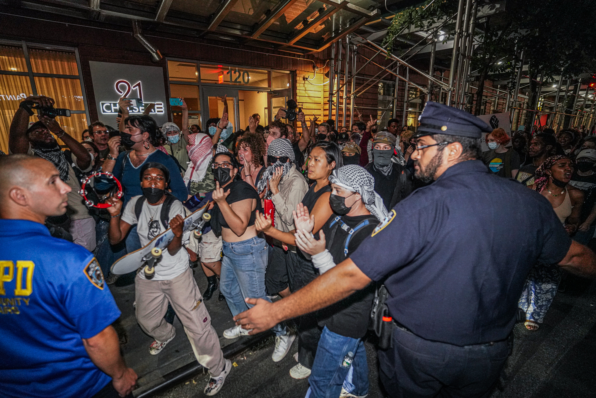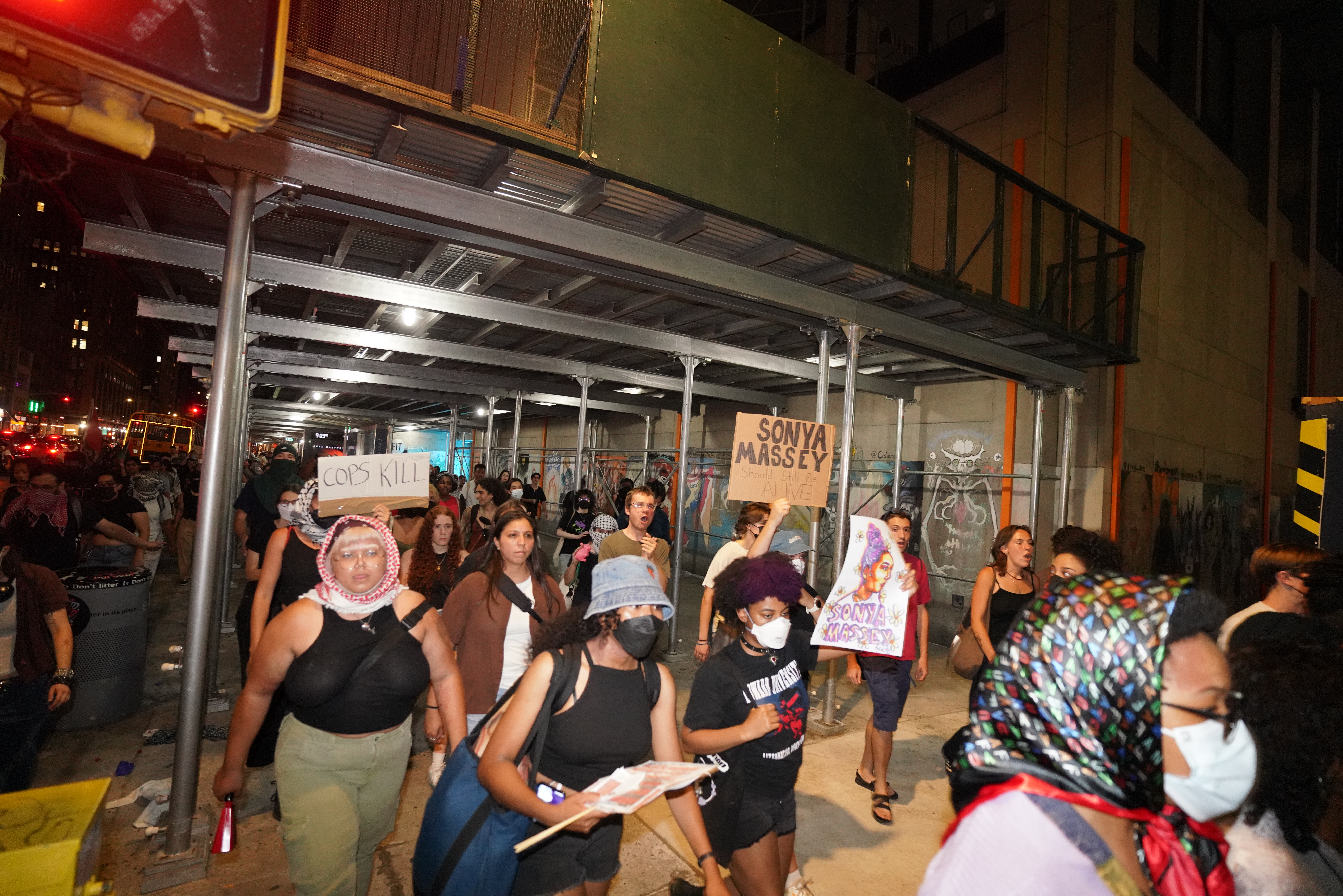 Protesters mourning the murder of Sonya Massey at the hands of police in Illinois faced off with cops in Lower Manhattan on Thursday night, resulting in at least one arrest.