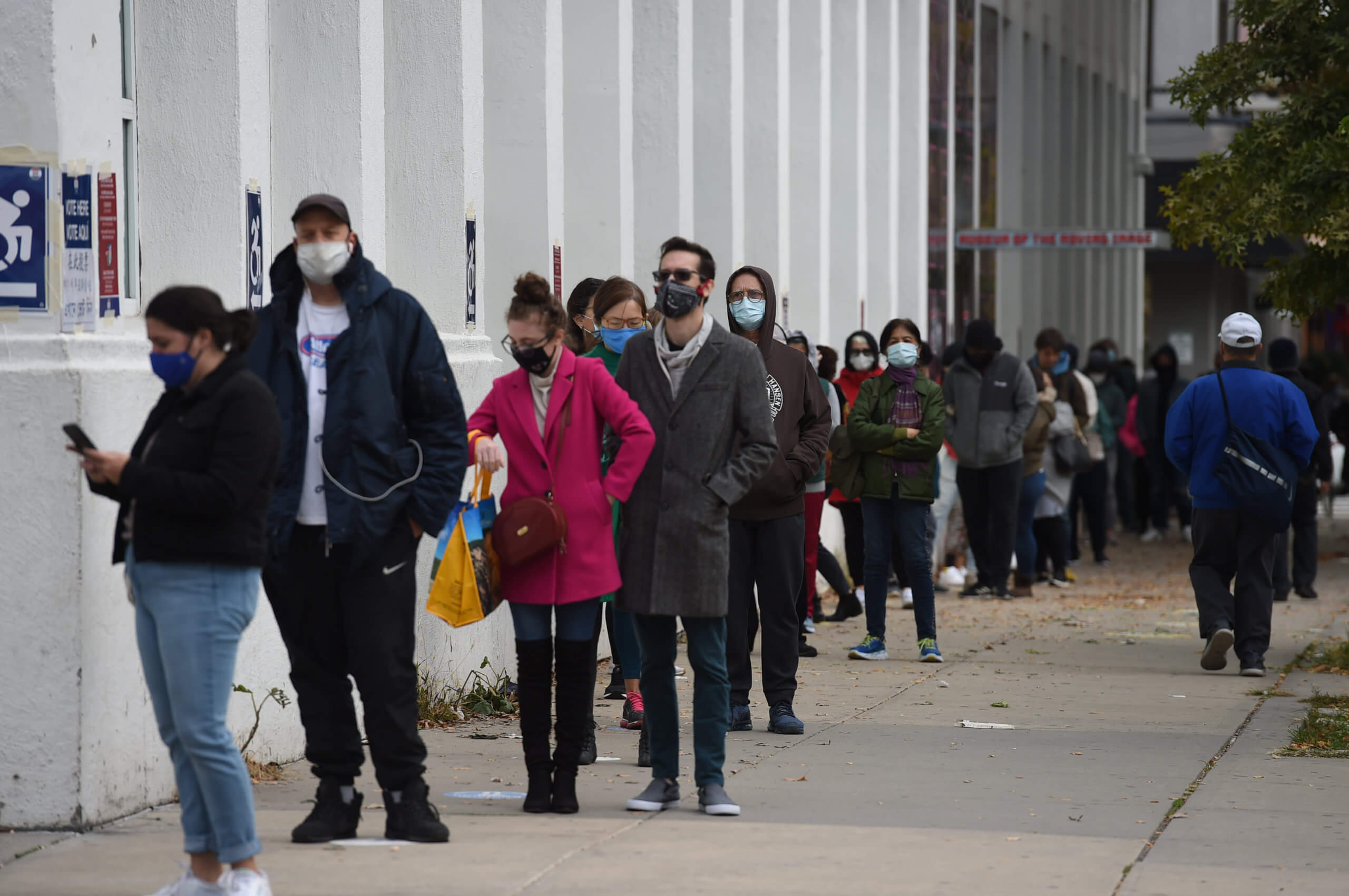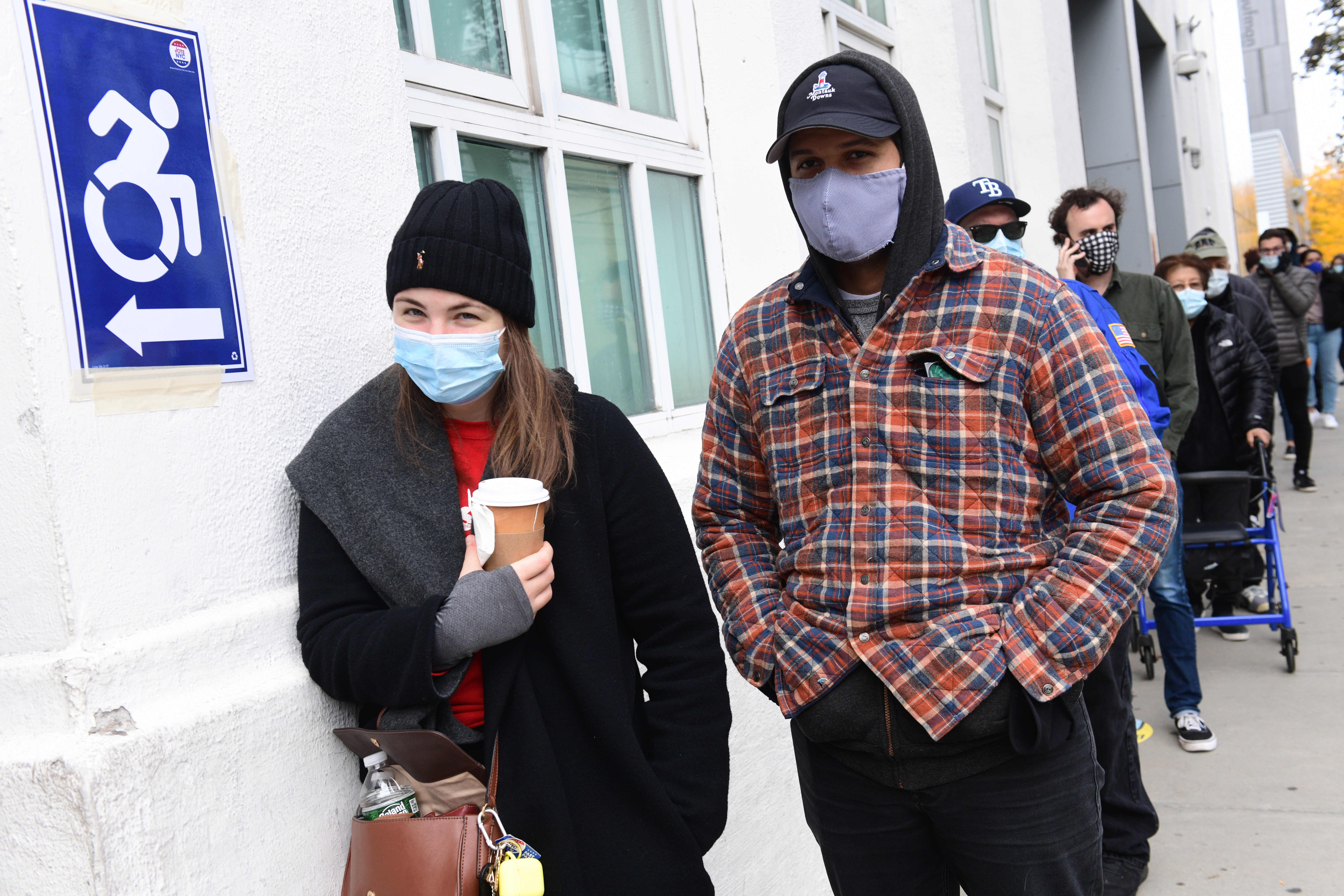 “I’m bummed we have to wait so long, but I’m proud so many people are showing up,” said Molly Cook, who was waiting with her boyfriend Rafael Escobar. “This is your right and you have to use it and vote