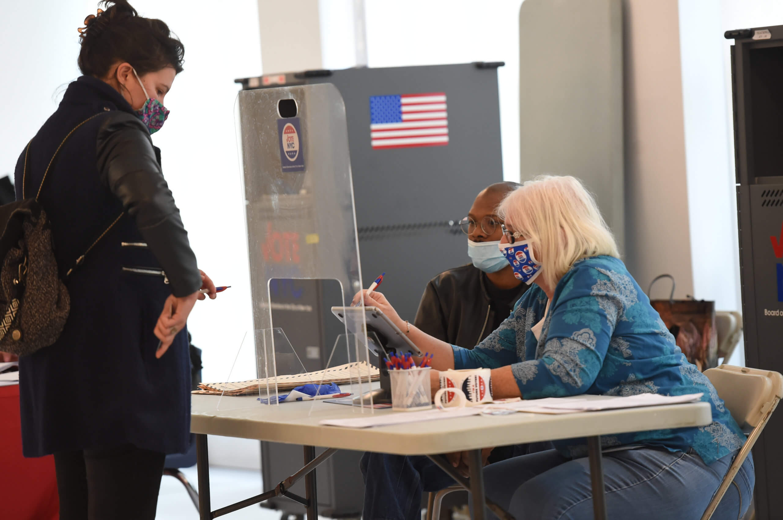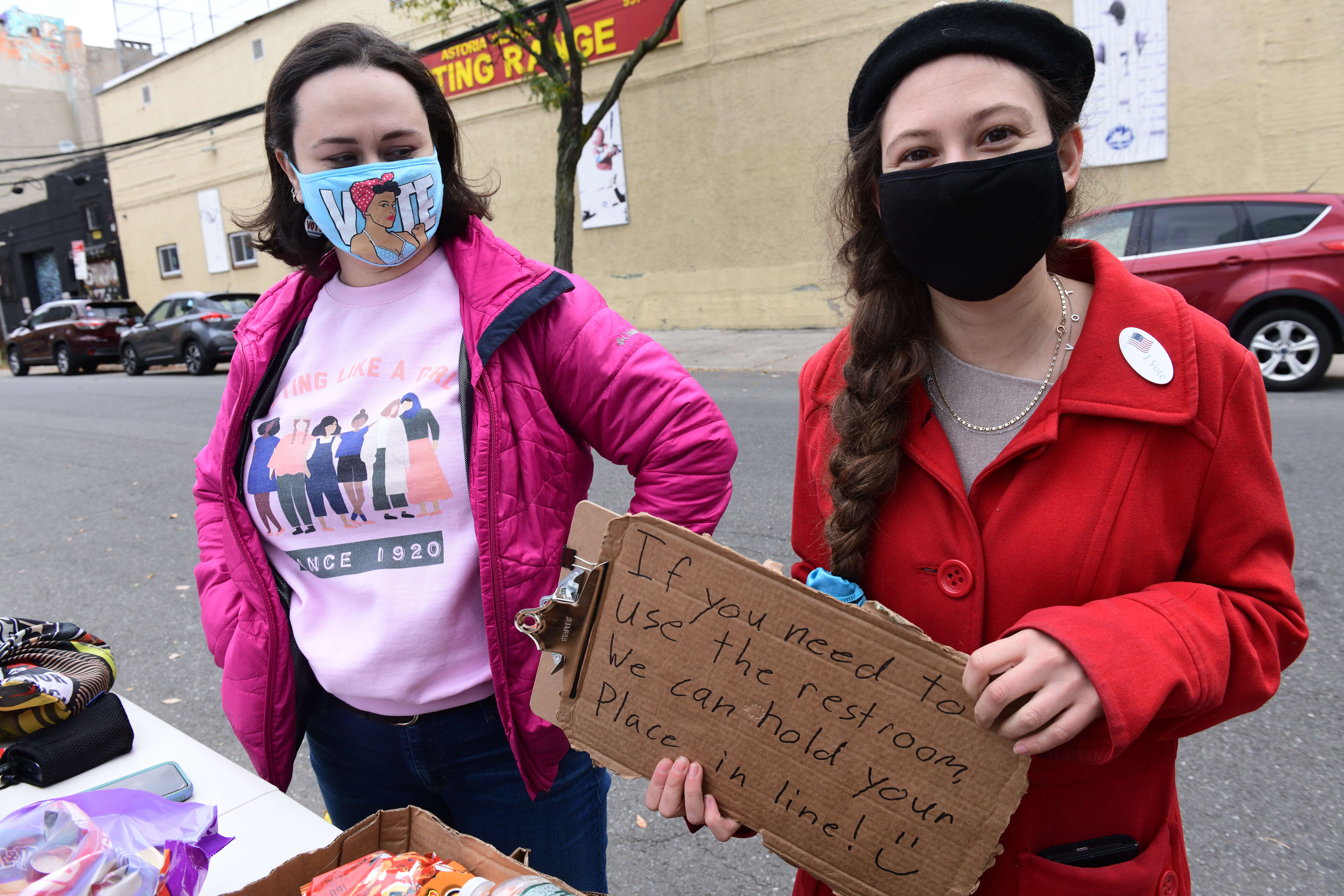 Volunteers from the Astoria Mutual Aid Network were outside around the corner giving out snacks and refreshment to those standing in line to vote.