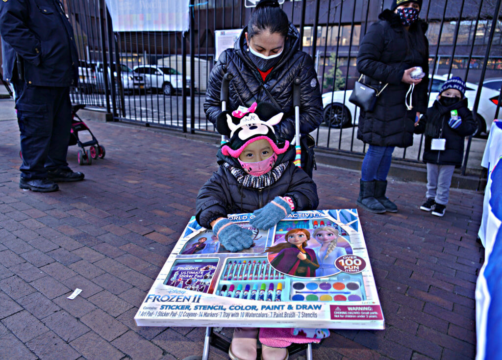 An array of tables were assembled where families could stop by in an orderly fashion to receive food items and children were presented with age-appropriate toys. Attendees were even offered the chance to pose alongside the Three Kings themselves. Kids, many of whom were in strollers, reached out gleefully as they were passed dolls, art sets, and other goodies.