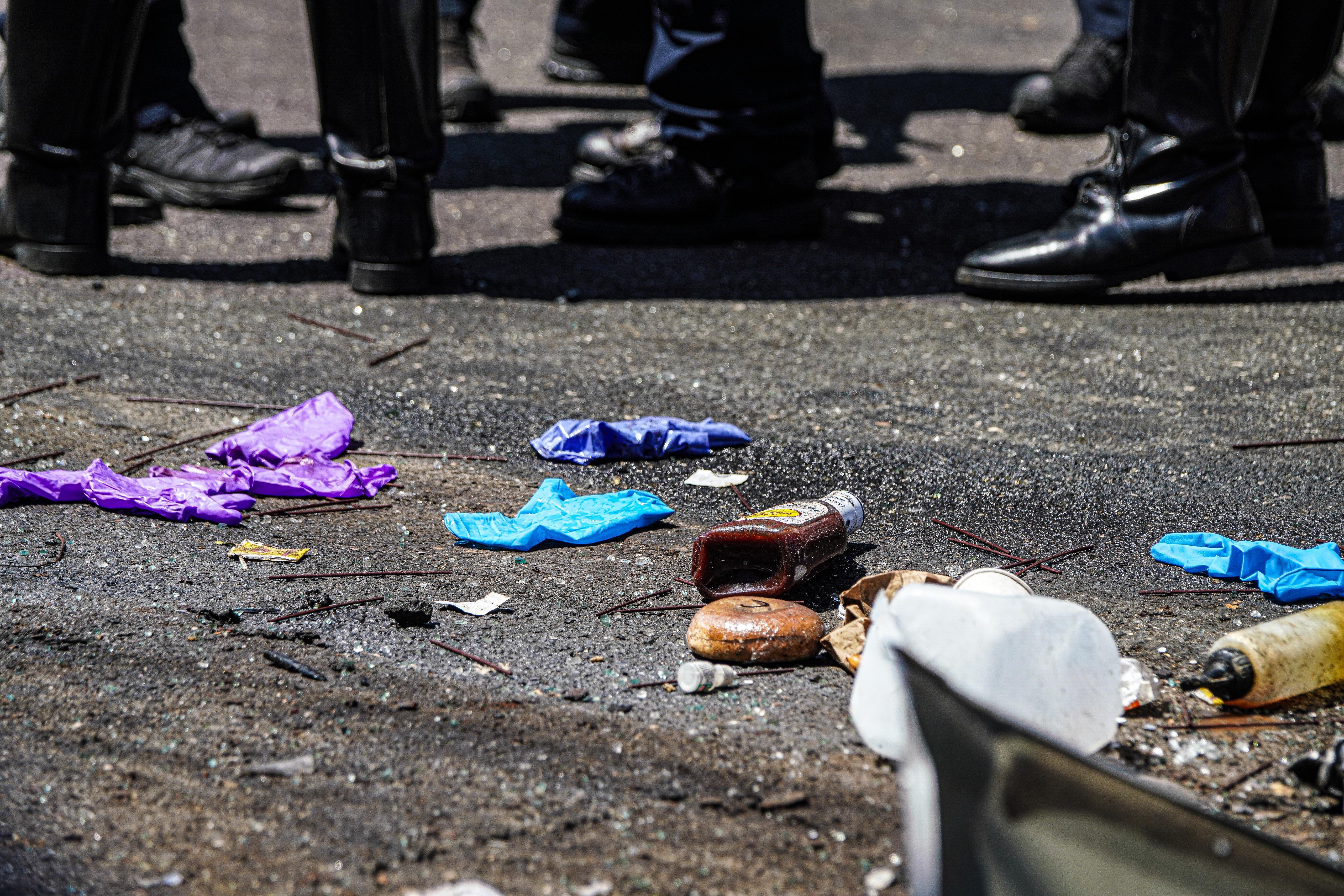 Debris from the crash and body parts were left strewn across the sidewalk and roadway, including food from the truck and twisted metal. The Toyota operated by the 84-year-old man was completely totaled — the front end rendered into a smashed metal heap, and blood covering the seats and deployed airbags inside.