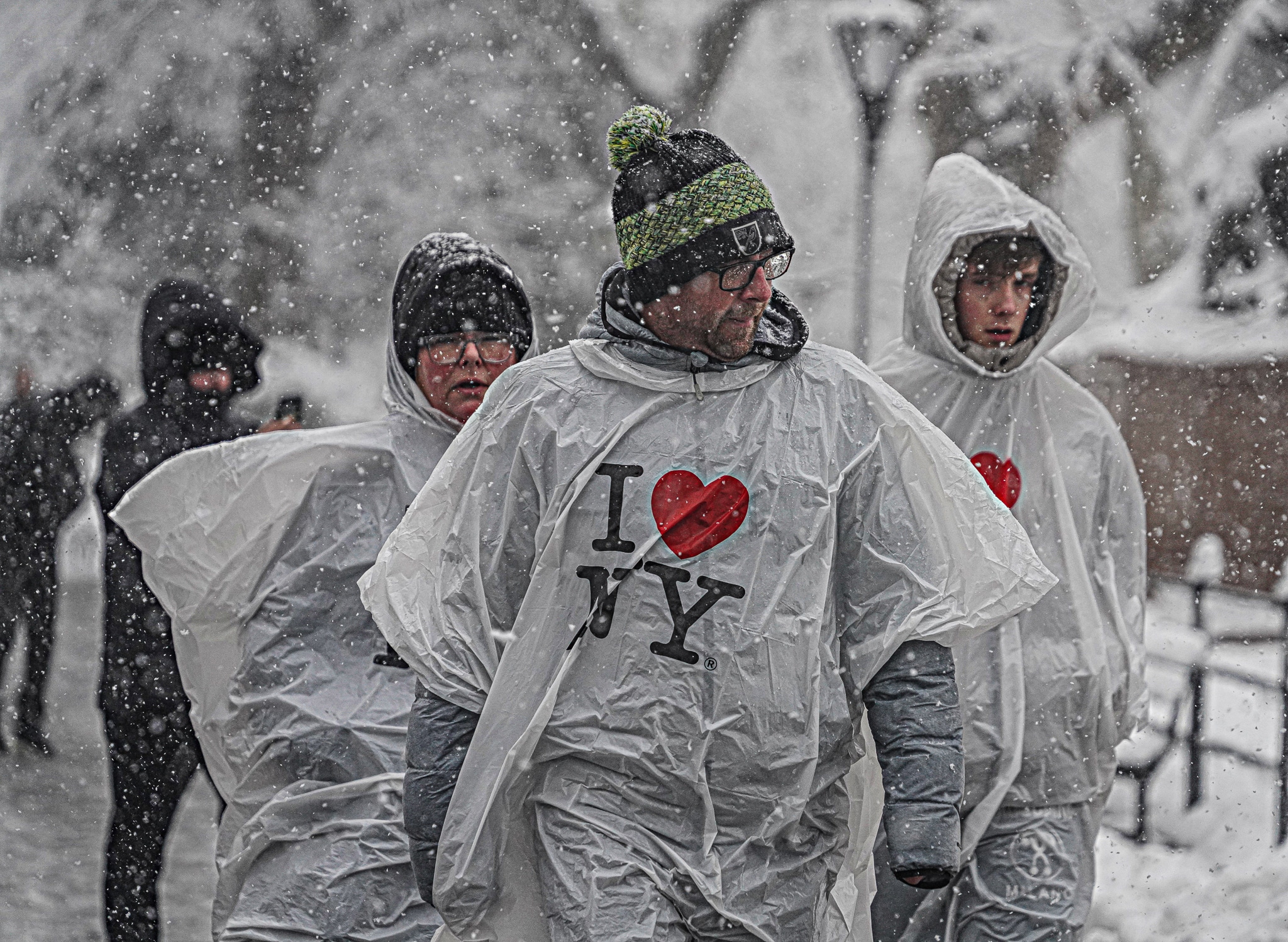 As the first major snowfall of the year drifted over the Big Apple on Tuesday, New Yorkers young and old flocked to Central Park to throw snowballs, race sleds, and simply stroll through the freshly laid blanket.