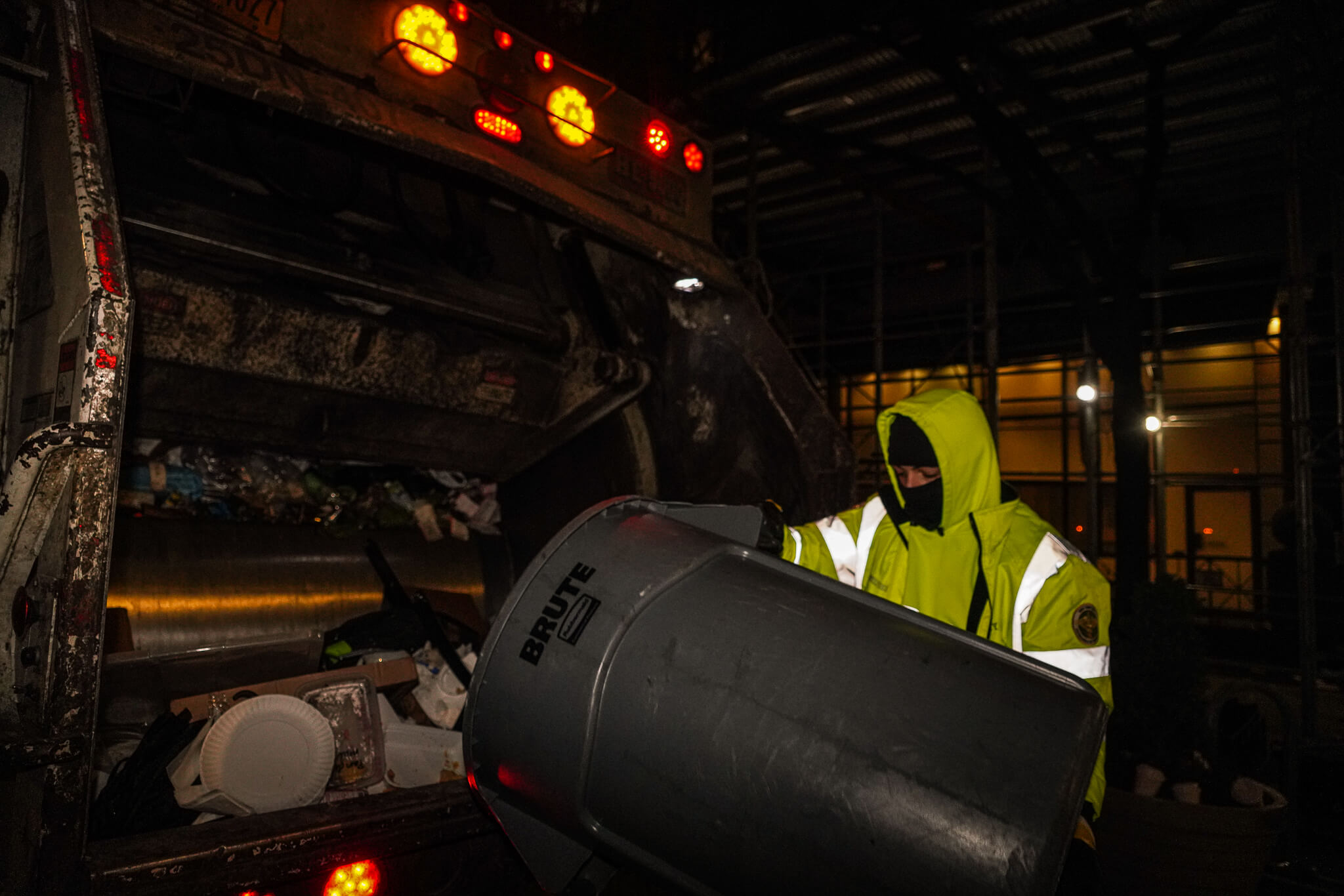 While sanitation workers tossed seats and garbage left behind, the majority of migrants were loaded into school buses for the trip to Brooklyn—a small number of others left by themselves. Furious with the sweep, supporters of the protest could be heard yelling at NYPD officers for helping to conduct the removal.