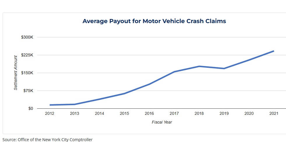 The report, titled Wreckless Spending: The Accelerating Cost of City Car Crash Settlements, was released by the New York City Comptroller’s Office Monday and revealed that the amount the city is paying to cover these settlements continues to soar–from $67.4 million in the fiscal year 2015 to as high as $130 million in the fiscal year 2021.