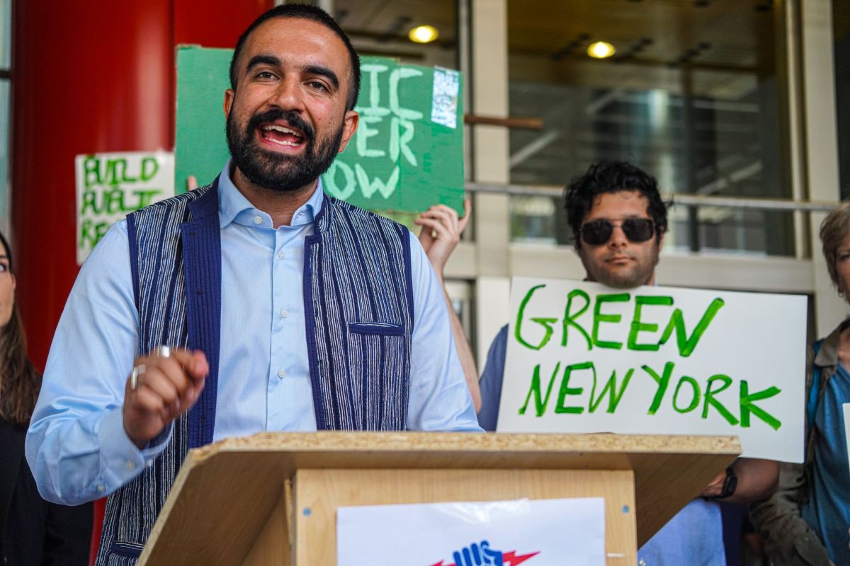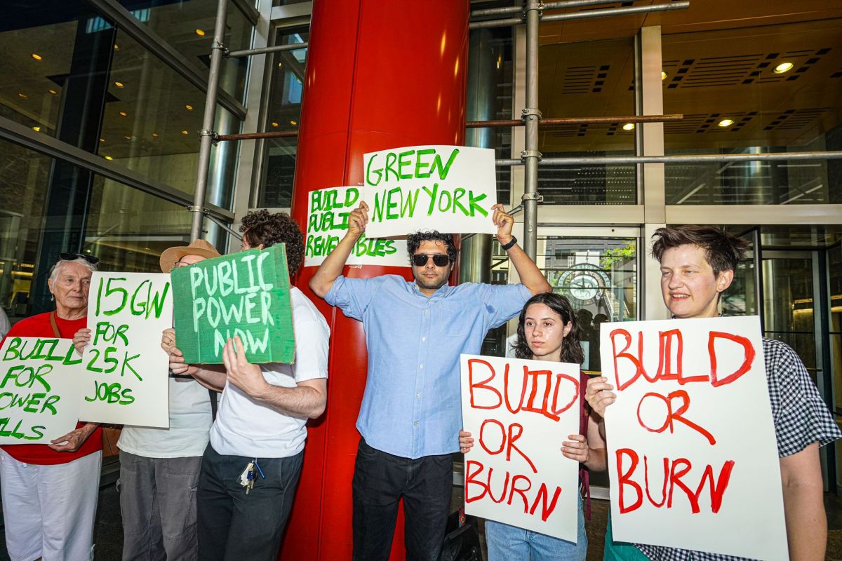 Demonstrators from Public Power NY joined Assembly Member Zohran Mamdani and State Senator Julia Salazar outside of Hochul’s Third Avenue office to denounce the governor for failing to act on legislation passed last year.