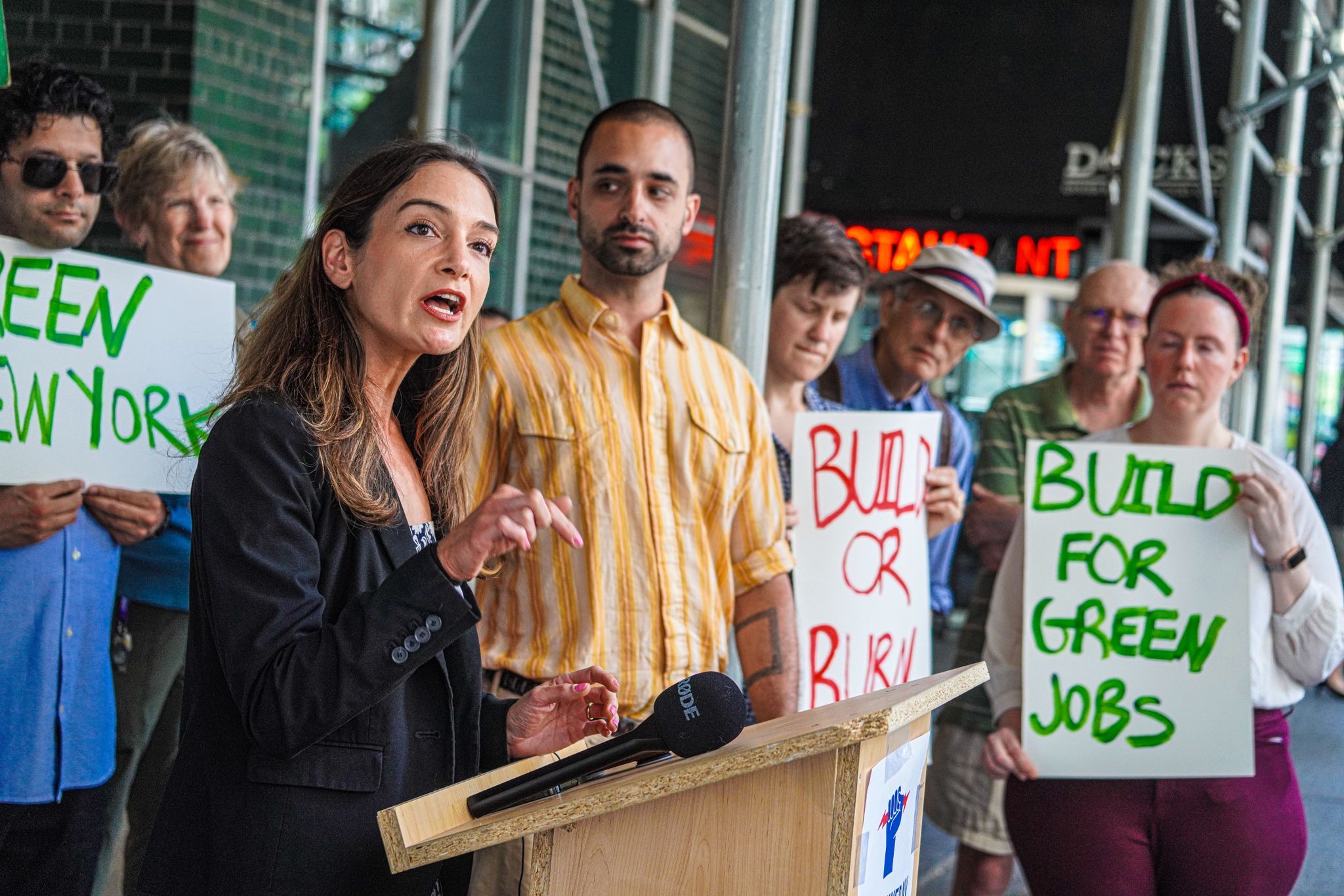 Despite the passage of the Build Public Renewables Act (BPRA), speakers charged that under Governor Hochul’s tenure, the activists noted that New York’s share of renewable energy has increased by less than 1%. Should that pace continue unchanged, they argued that it leaves out of reach the goal of a 70% renewable energy grid by 2030 — as required under the 2019 Climate Leadership and Community Protection Act (CLCPA).