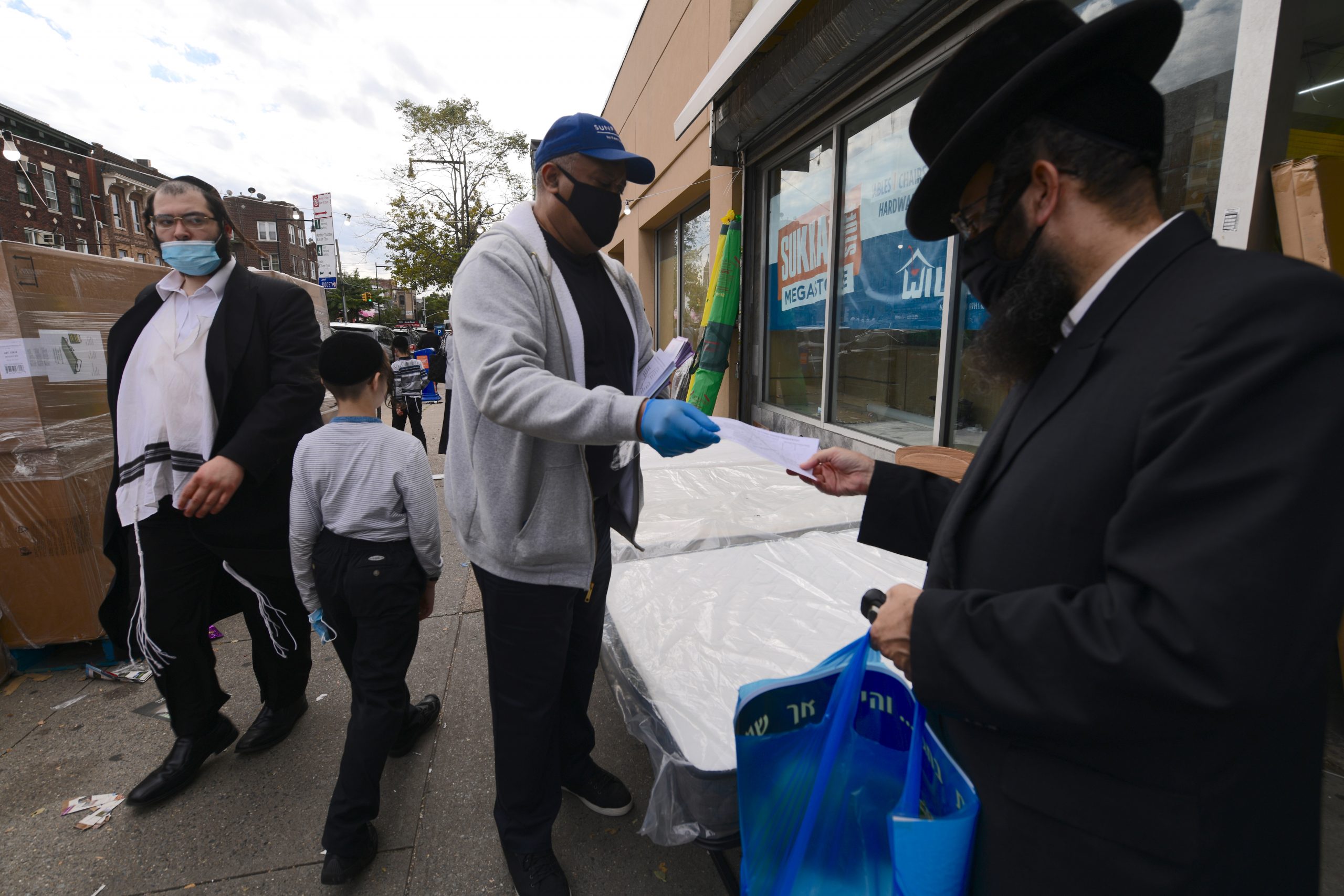 Tracers from the city’s Test and Trace Corps fanned out along busy 13th Avenue, crowded with shoppers gathering well before the next Jewish holiday of Succoth, in which members of the community and families gather for meals in small huts, as was done in ancient times to commemorate the wandering through the desert.