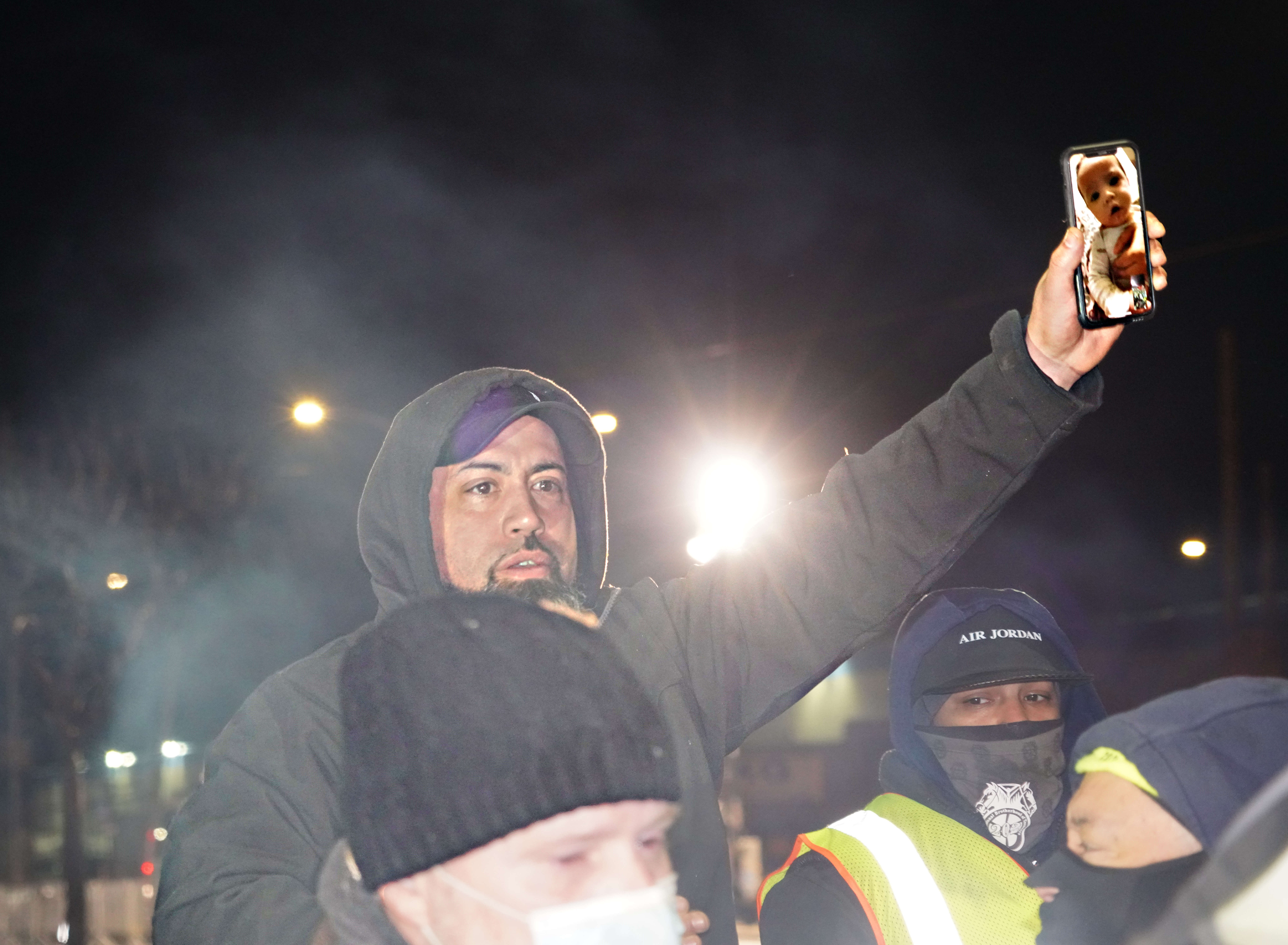 Inspired by this speech one worker brandished his cell phone, which depicted a photograph of a baby and yelled: “This is why I do what I do! This is why I am out here!”