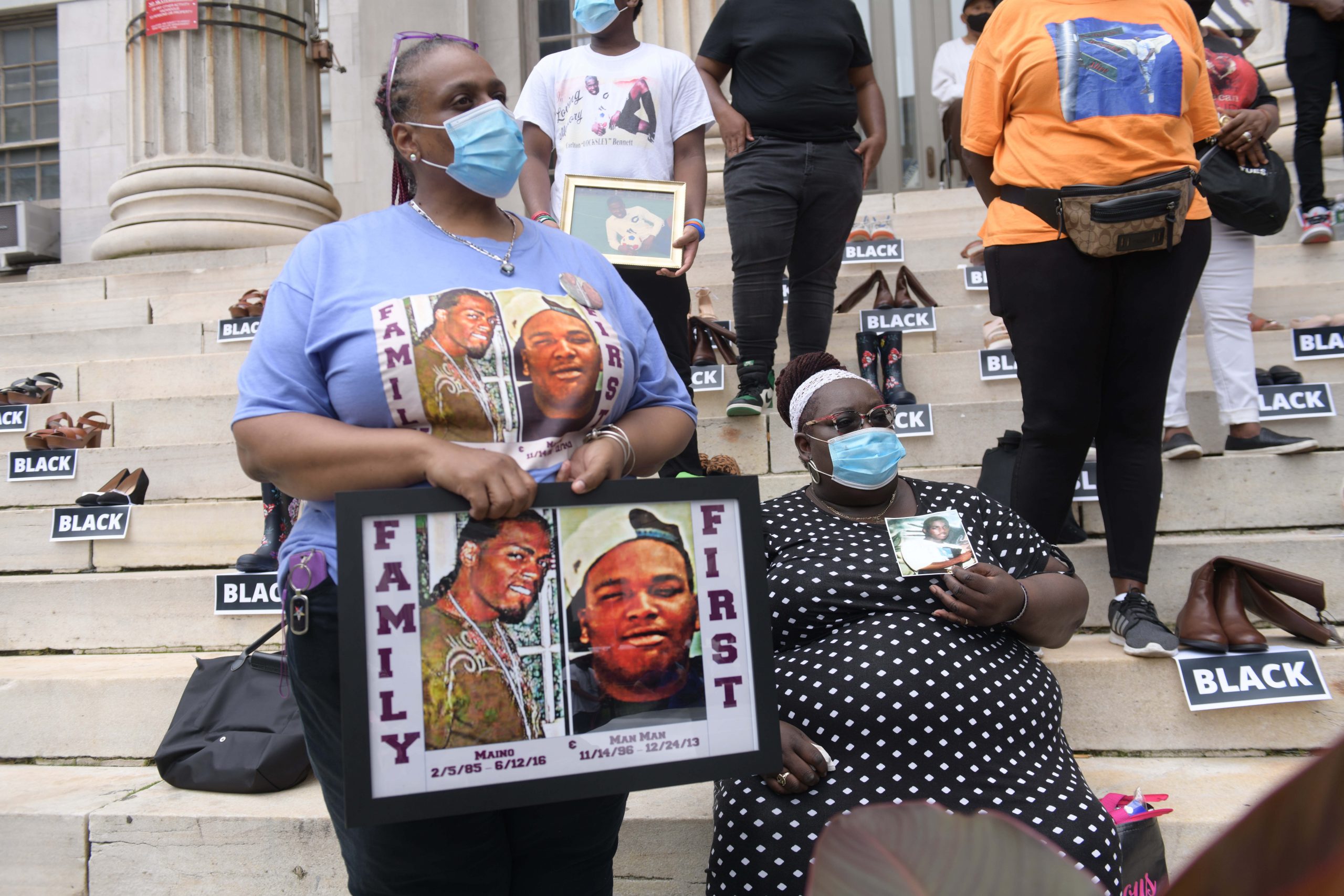 On the steps of Brooklyn Borough Hall, 101 pairs of shoes were arranged, a label under each pair announced “Black” or “Latino.” They represented the many dead Black and brown people killed from gun violence around the city as a result of a multitude of causes.