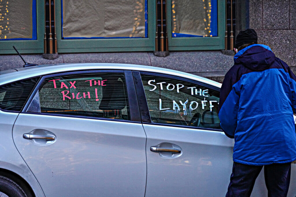 In addition, the demonstration also called the wealthy to task for extravagant living while the majority suffer during a global pandemic.