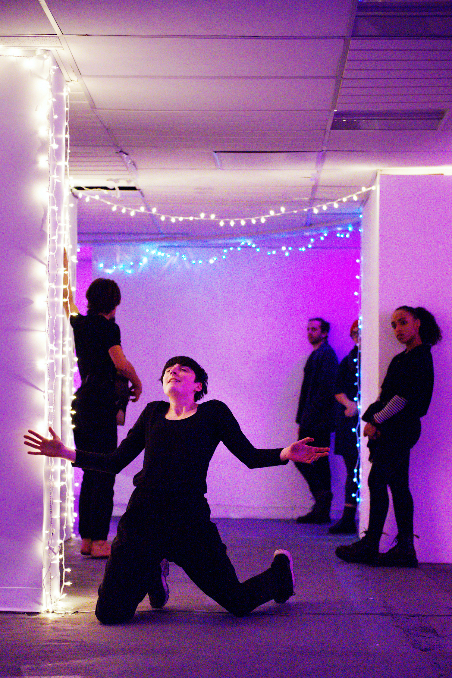 Although the group has only been performing in public since January, they put in a full year of weekly rehearsals prior to their debut at Dixon Place. Their improvised pieces are not the results of rules or pre-arranged cues, but come out of what Udall refers to as their “practice.” “It’s not about rules,” he explained. “Rules are from the outside in – we work from the inside out.”