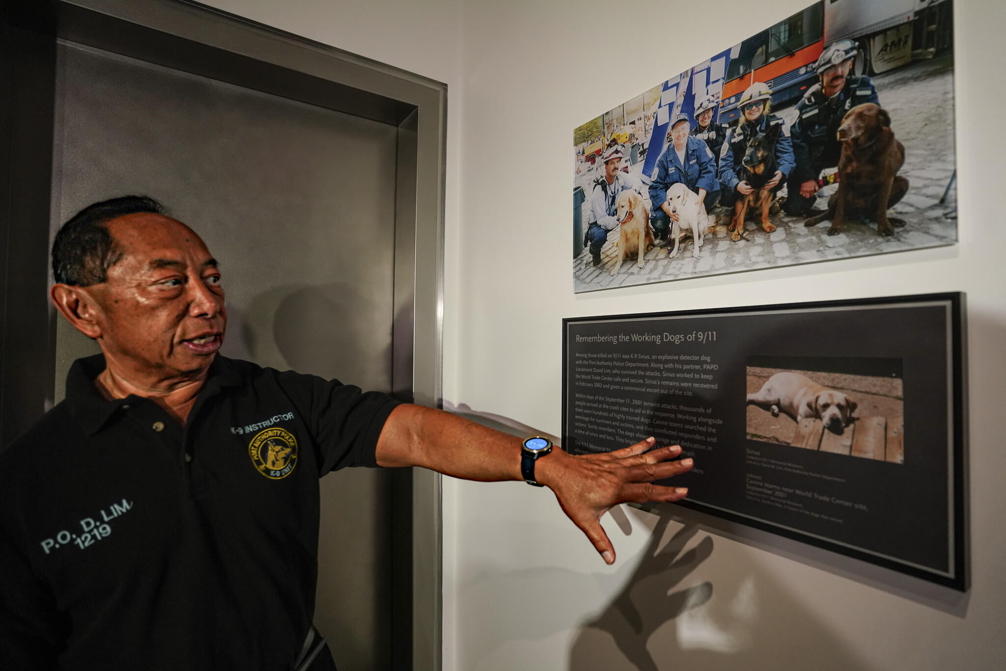 “Sirius PAPD K-7 number 17 was on patrol on the morning of 9/11 at the World Trade Center with his partner PAPD Officer David Lim when the attacks began,” President and CEO of the National September 11 Memorial and Museum Elizabeth Hillman said. “Officer Lim secured Sirius in his kennel on the B1 level of the South Tower so he could help evacuate people from the tower safely. He told Sirius he would return.”