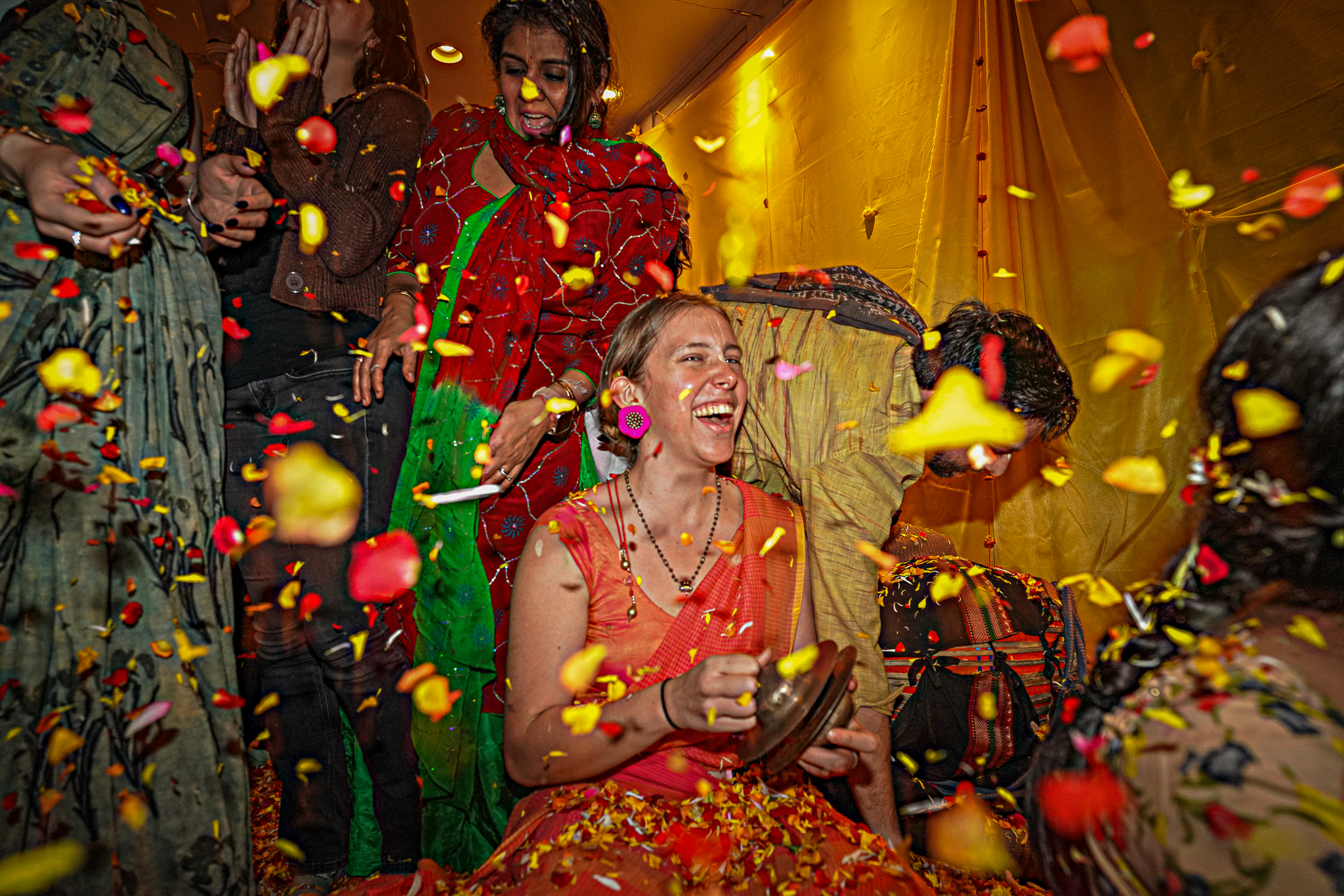 Through a blitz of color and goodwill, they chanted on the Lower East Side Saturday night in honor of Holi.