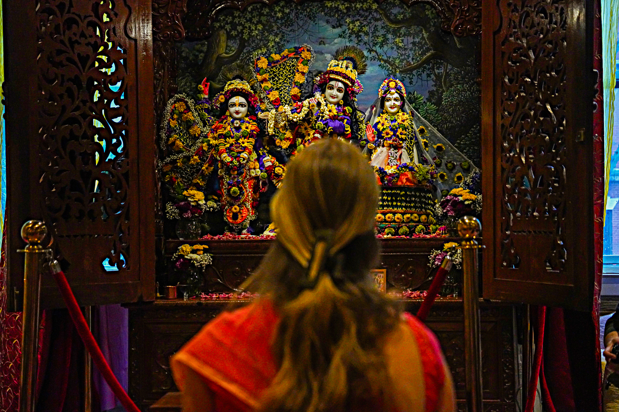 For the past two days, members of the Bhakti Center placed approximately 450 pounds of petals into bags for the ceremony. The petals were then sprinkled upon the deities, spilling onto the floor where parishioners grabbed handfuls and tossed them onto each other as a symbol of universal love.