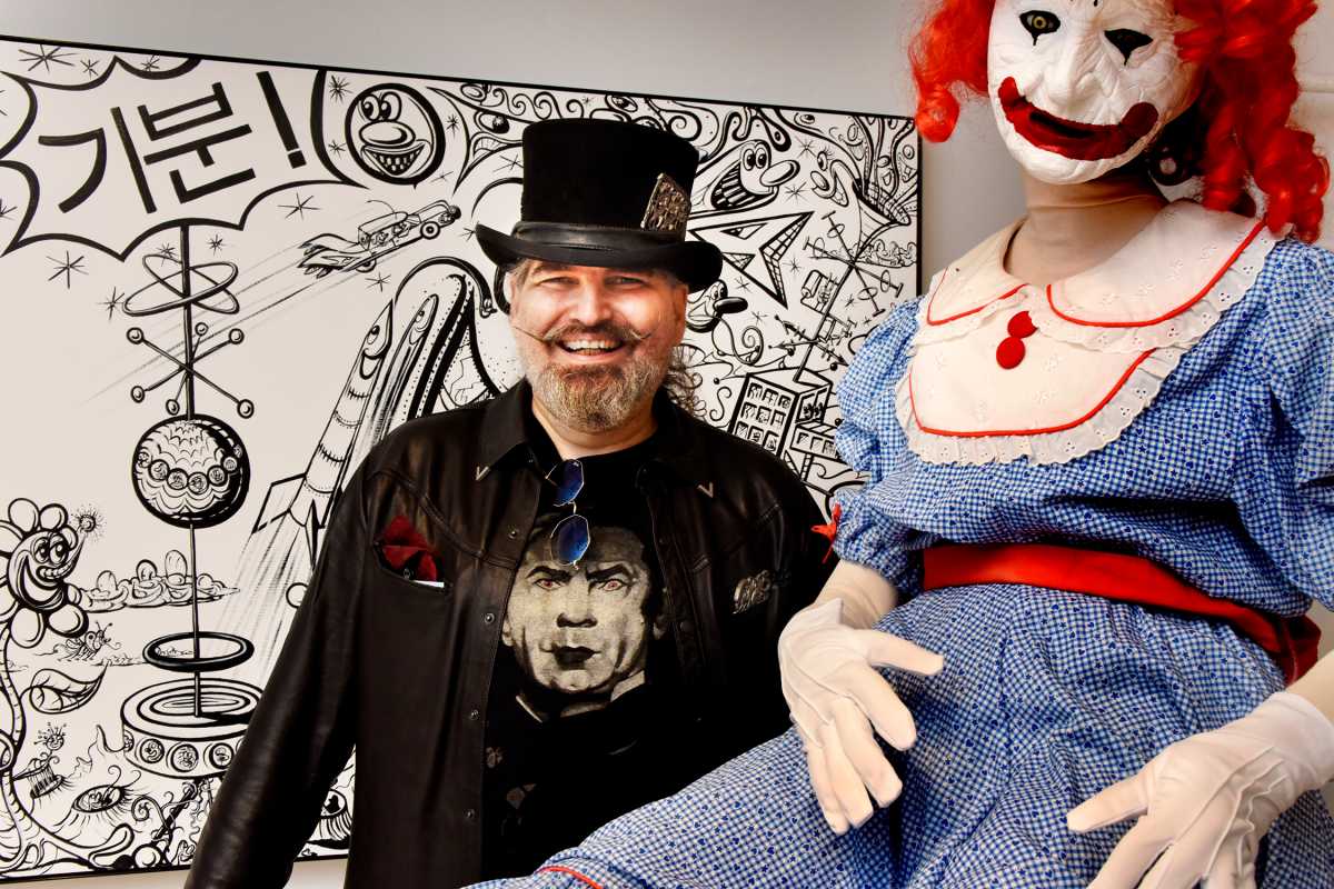 Carnival, the group show curated by the esteemed artist Joe Coleman at Soho’s Jeffrey Deitch Gallery, had an opening day that lived up to its name. Hundreds of friends and fans packed the huge space for an exhibit that is a perfect match of curator and concept.
