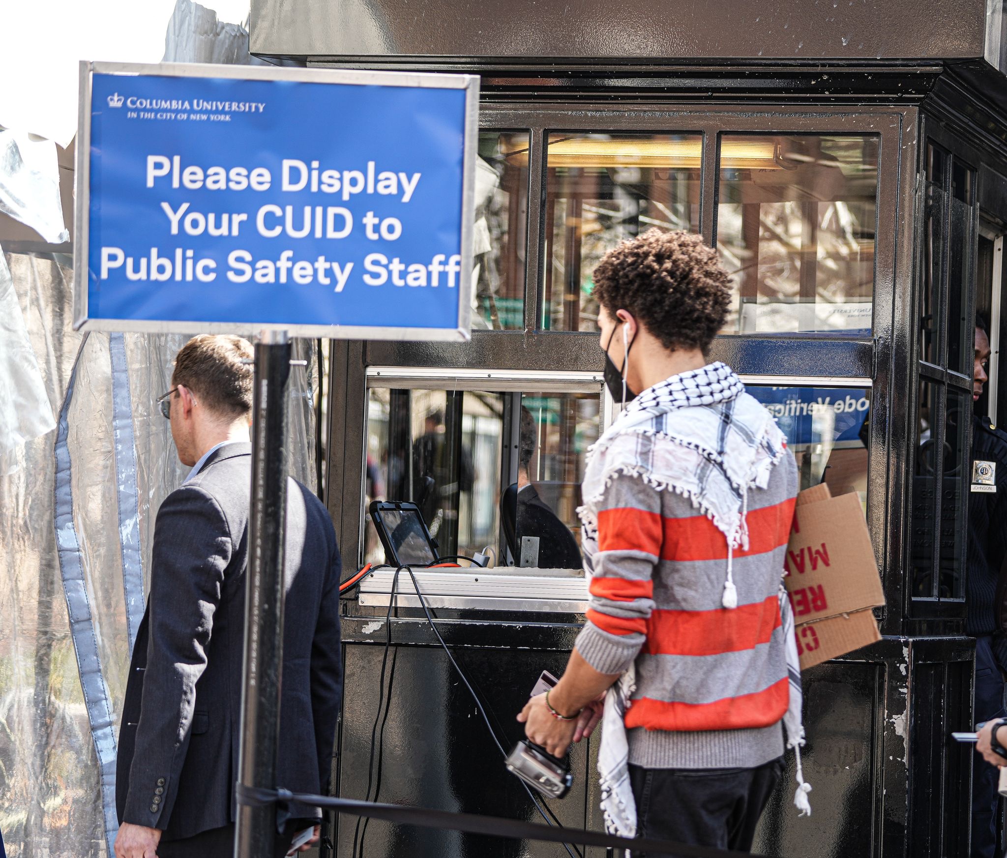 At Columbia University, long lines formed after security took extra measures to prevent outsiders from entering the campus. Students and faculty were asked to show their college ID to one security guard before scanning it at another point.