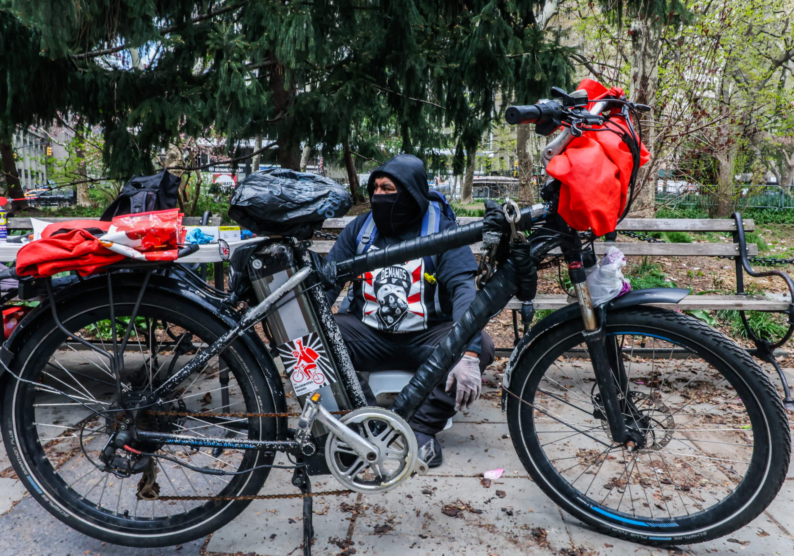 Celebrating the victory, several workers set up their bikes in City Hall Park and tinkered with the cycles, fixing them for fellow workers while others rallied on the steps of City Hall itself holding large banners.