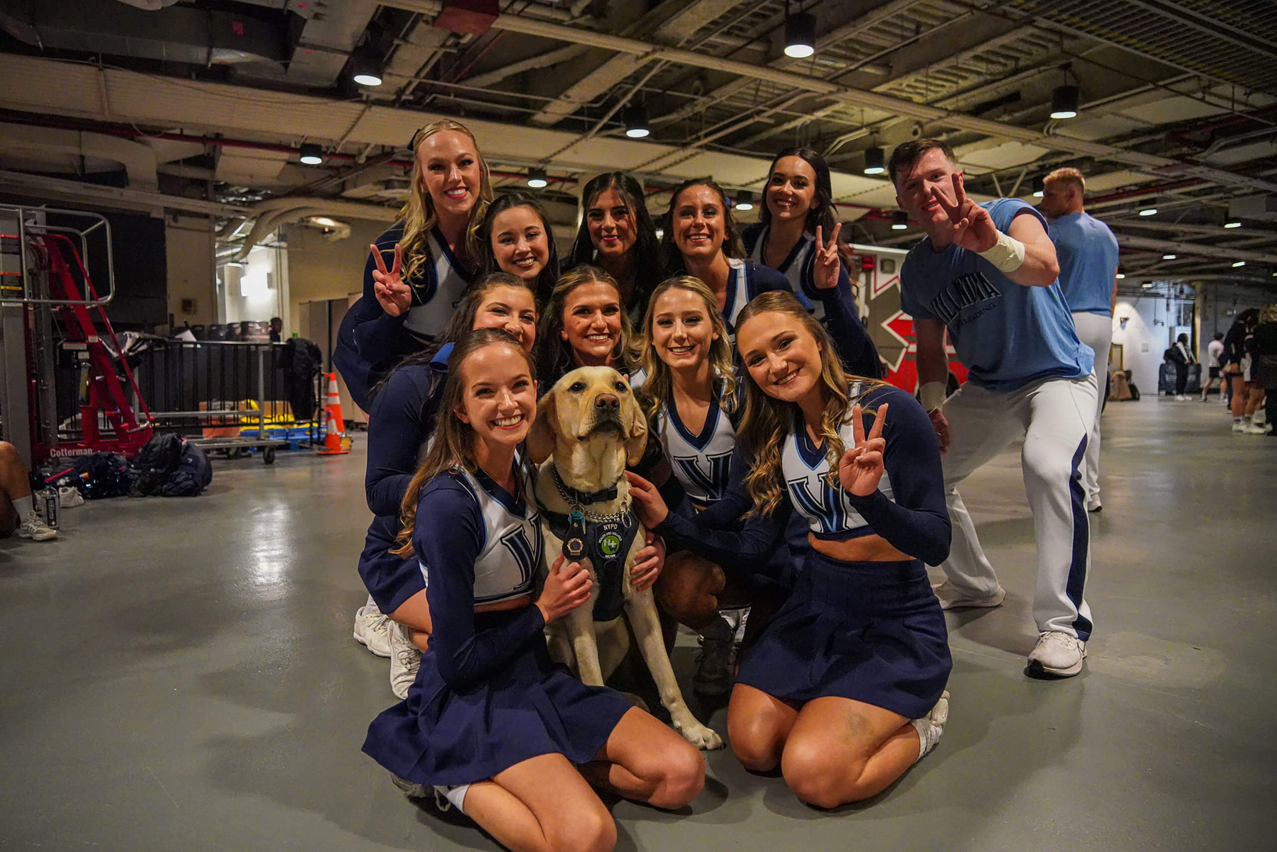 The unit were received like rock stars, with cheerleaders fawning over Piper, who appeared to love the attention. Dealing with this kind of treatment is not out of the ordinary for the dogs, in fact it is their job. As a therapy unit, they are responsible for helping those suffering through traumatic events.