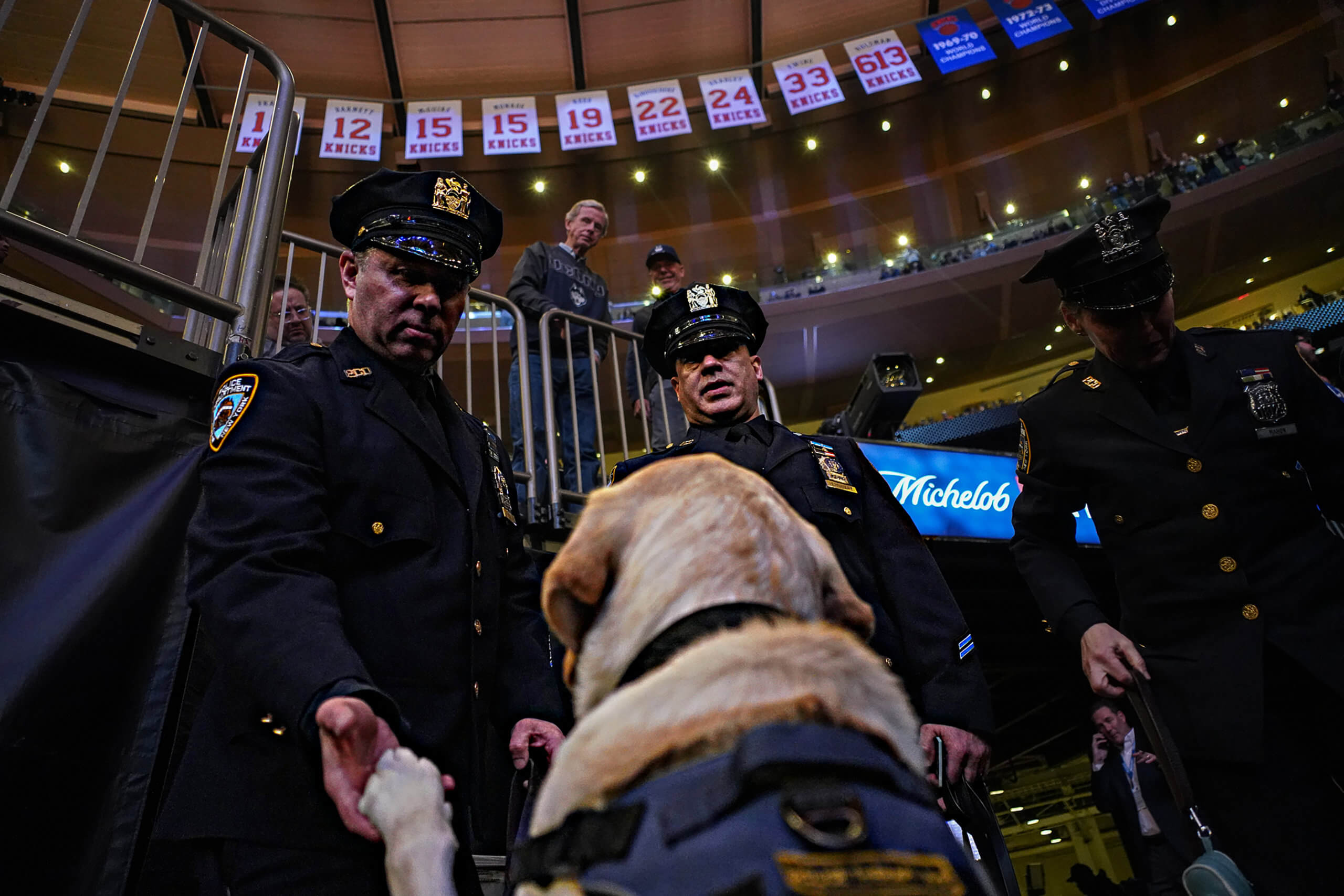 The slick, shiny court within New York City’s most iconic sports arena is usually solely reserved for the squeaking sneakers of basketball players, yet on March 11 both NYPD boots and paws stepped onto the playing field.