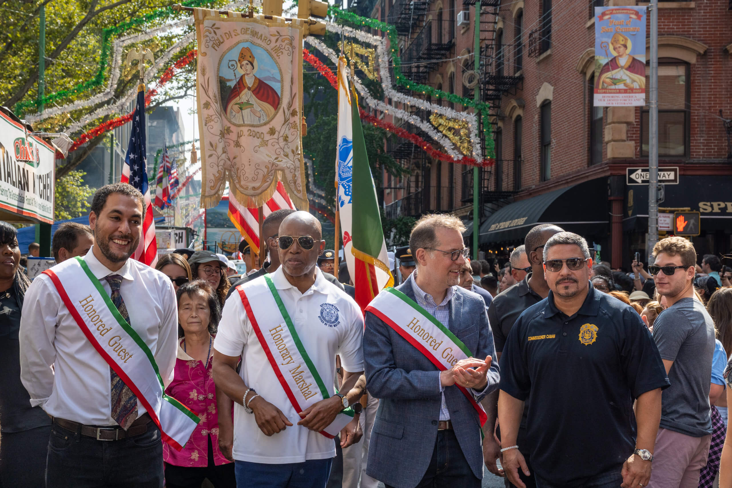 Honorary Guest Manhattan Borough President Mark Levine and Honorary Marshall Mayor Eric Adams enthusiastically greeted spectators along the route and stopped for selfies with New Yorkers.