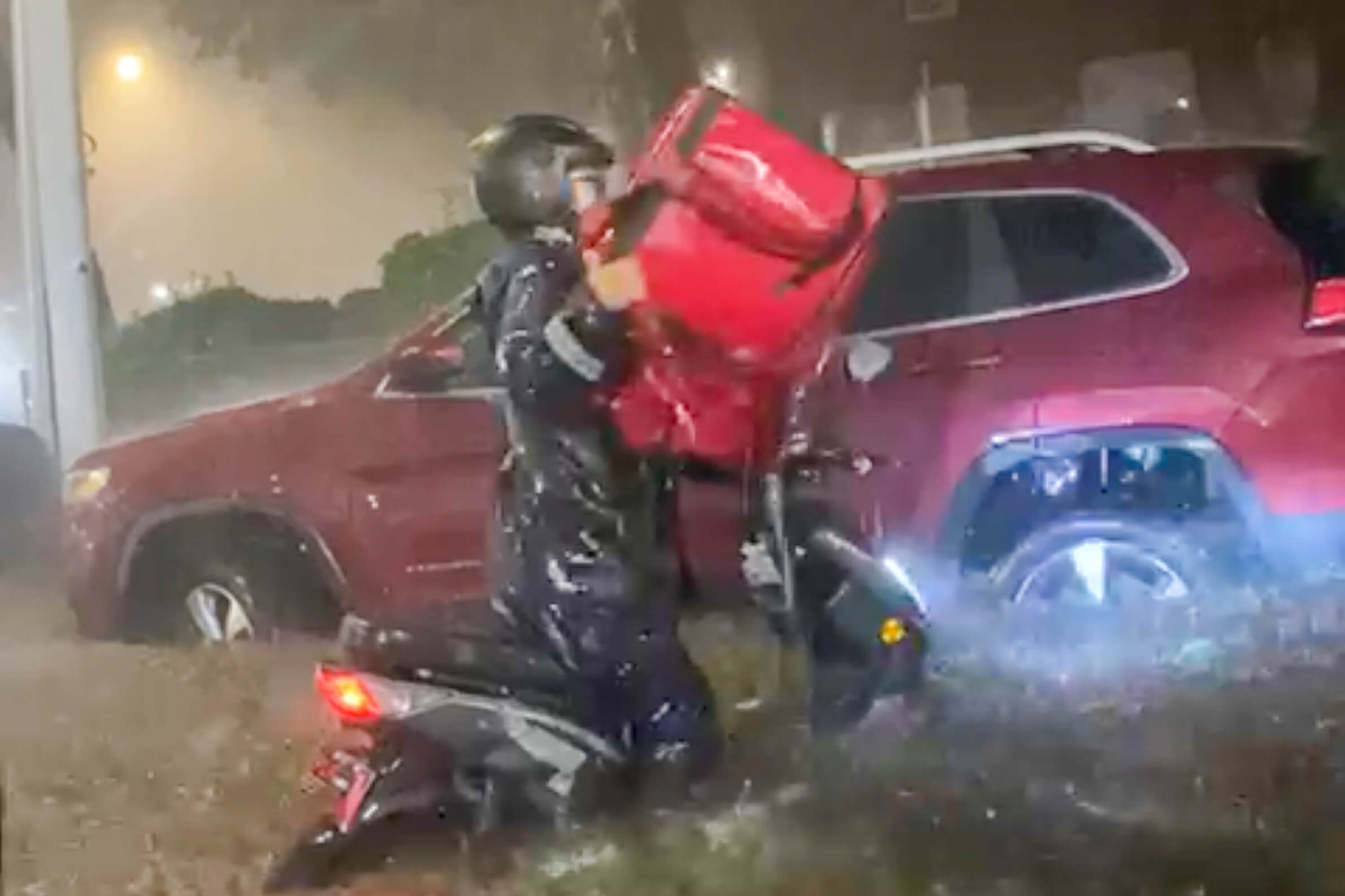 Workers hauled outside in hip-deep water for meager pay as orders continued coming in. Images of food couriers wading through the deluge quickly began circulating on social media, reigniting public conversation over hazardous conditions workers face.