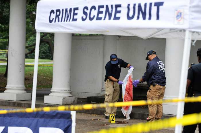 Twenty minutes later, cops from neighboring 42nd Precinct, part of the 44th Precinct division, received shots fired by 911. They also received ShotSpotter activation. Upon arrival at 1620 Fulton Ave., next to Claremont Park, two young women stood with police from both precincts, stunned by the violence as other cops marked spent rounds and tied yellow crime scene tape.