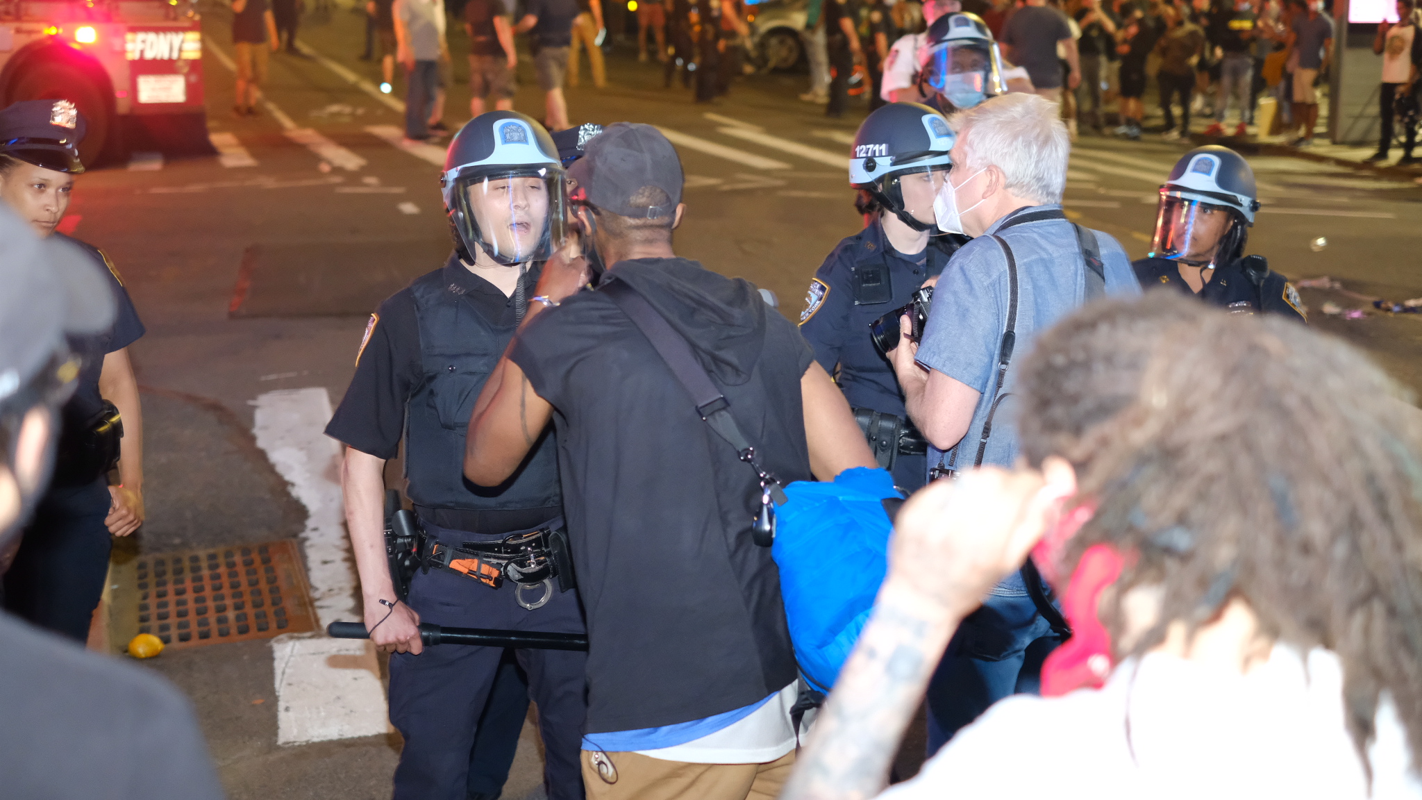 “It’s inappropriate for protesters to surround a police vehicle and threaten police officers. That’s wrong on its face, and it hasn’t happened in the history of protest in this city,” de Blasio said. “It’s clear that a different element has come into play here who are trying to hurt police officers and damage their vehicles. If a police officer is in that situation, they have to get out of that situation.”