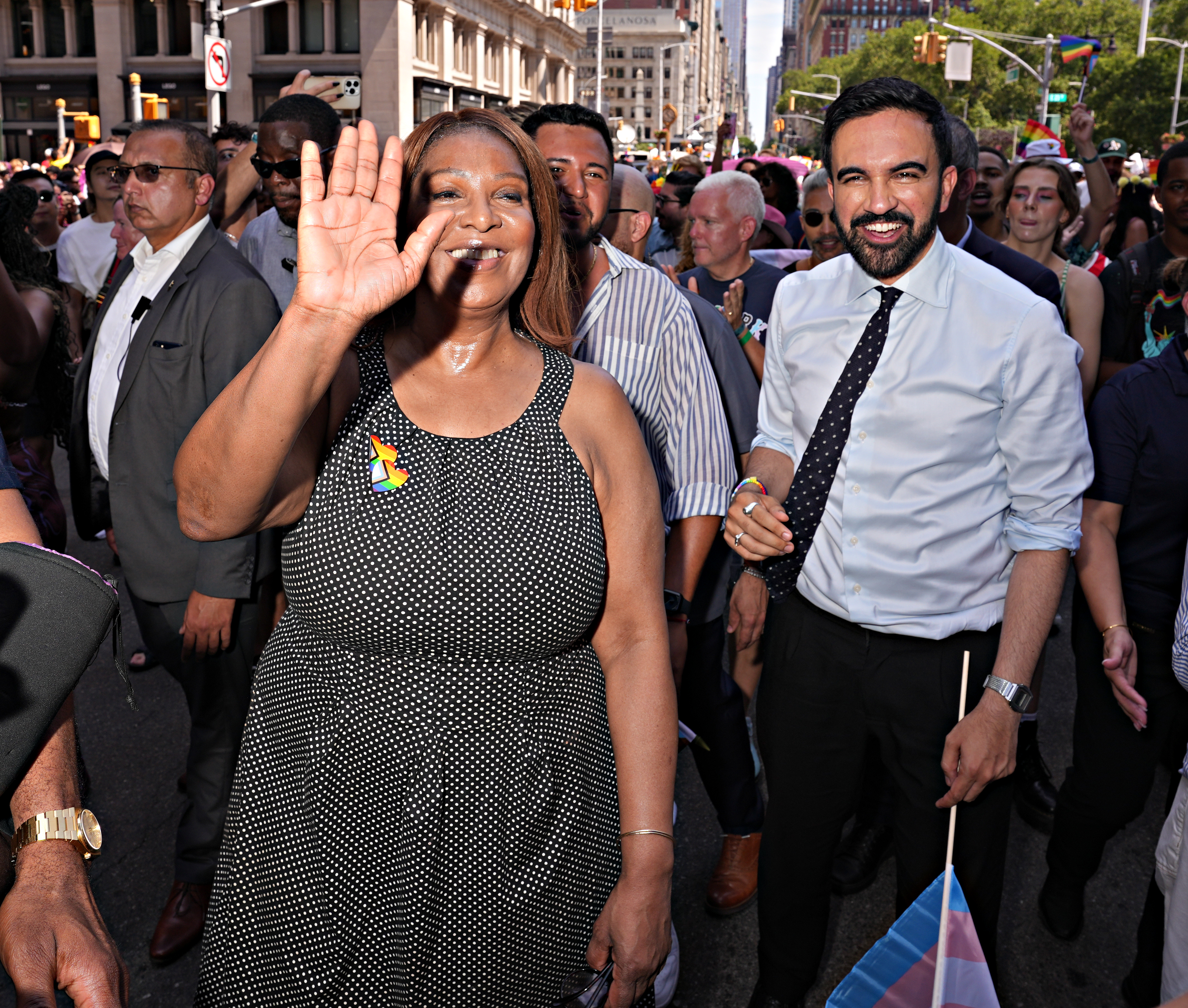 The event kicked off with politicians such as Gov. Kathy Hochul and Mayor Eric Adams leading the charge. The crowd erupted when presumptive Democratic mayoral nominee Zohran Mamdani appeared on the route, with spectators jumping the barricade to take selfies with him.