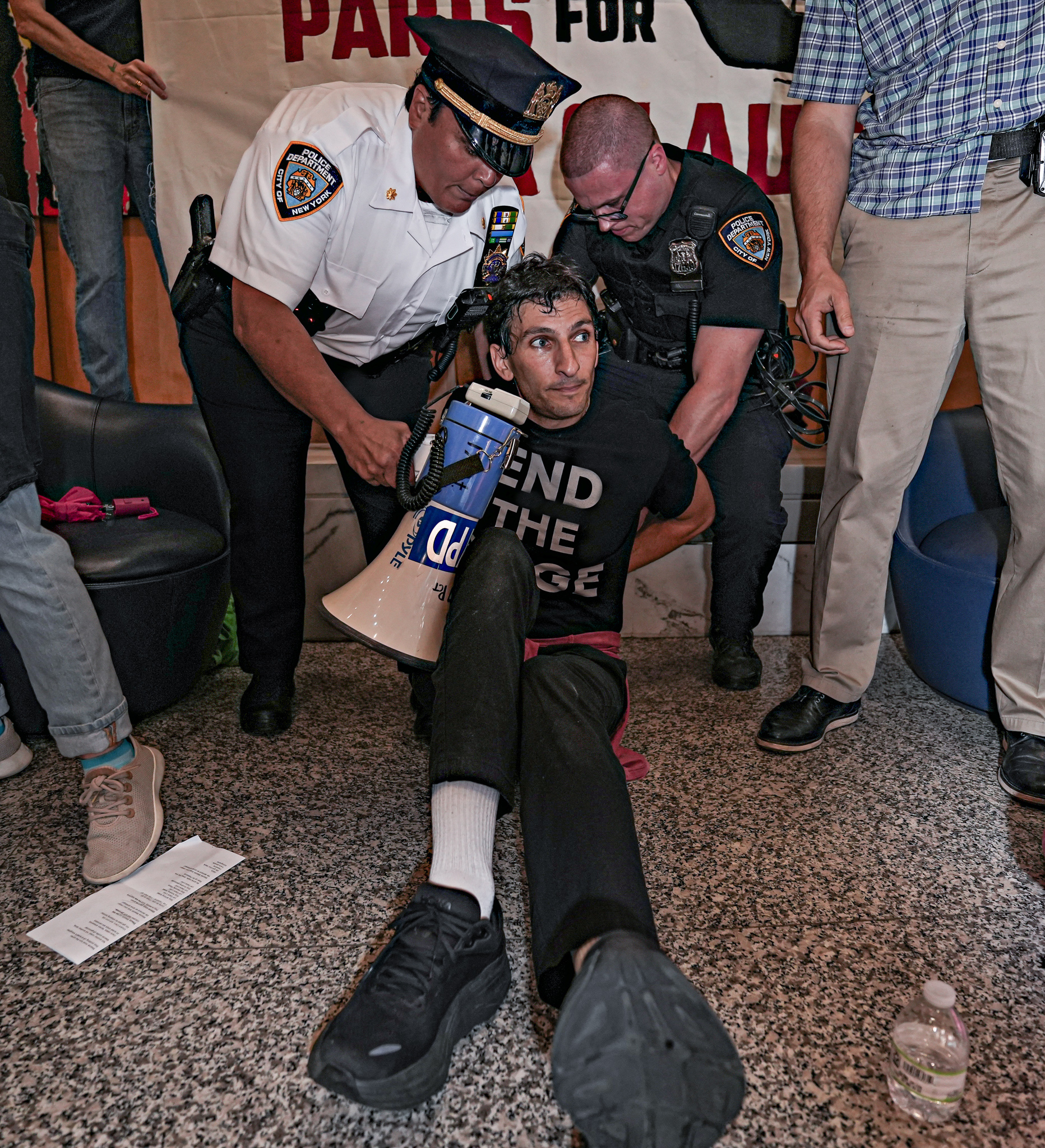 Members of the NYPD’s SRG Unit moved in after about an hour and cuffed protesters as they screamed. Some still refused to be moved and were carried away by the NYPD.