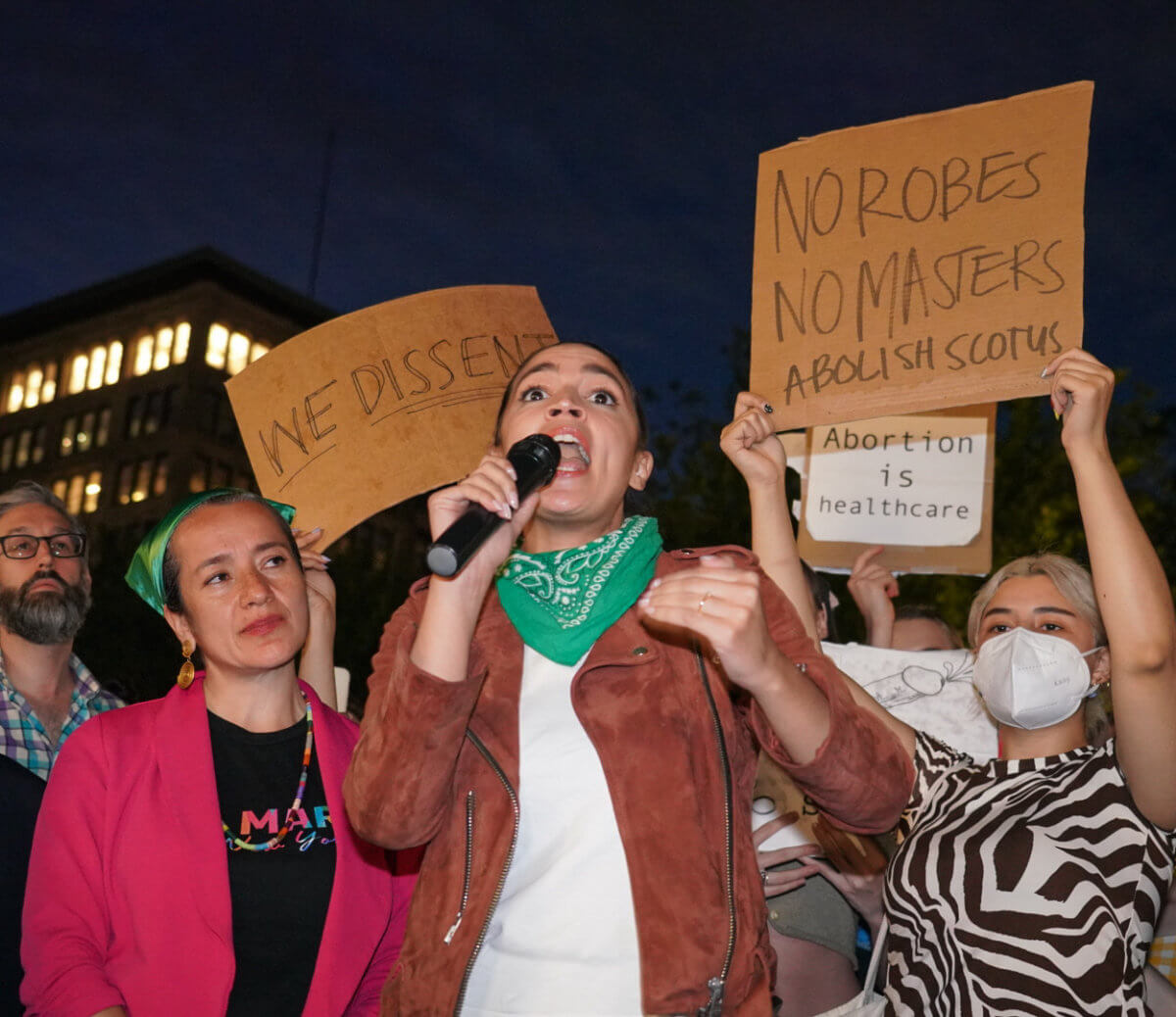 Representative Alexandria Ocasio-Cortez flew from Washington, D.C, to Union Square joining protesters late into the evening as she urged them to be relentless in restoring all of our rights in the United States. As a strong advocate for the right to choose, she spoke of how she brought friends to a free family health center to get abortions so they would not feel alone. The congress woman shared her own personal account with abortion, stating that four years ago she when was a waitress in Union Square, she was raped.