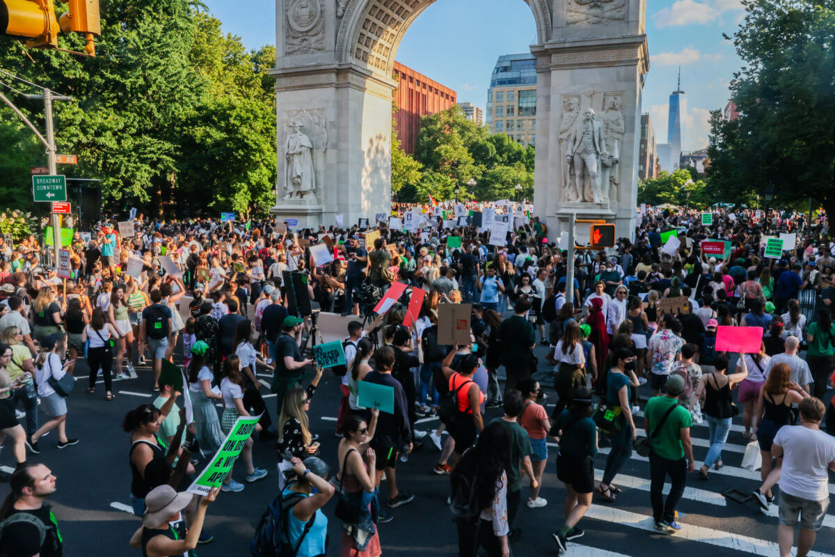 Females of all ages and supporters gathered at meeting points from Foley Square and Union Square to Washington Square Park to protest what many in New York and across the country believe to be an unjust decision infringing upon women’s rights.