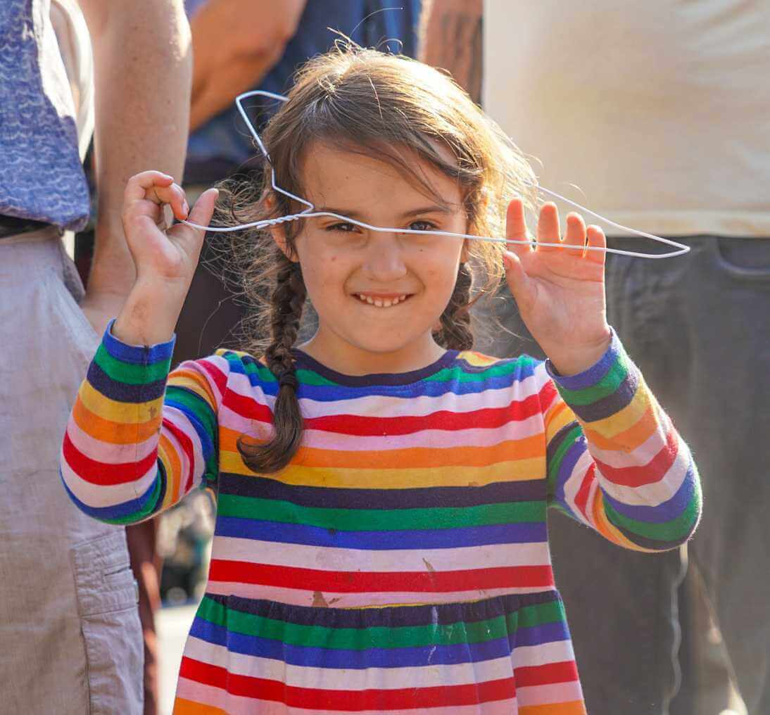 Mahayana Landowne, from Crown Heights, wore a wedding dress and a blindfold as part of a costume depicting “justice” weeping.
